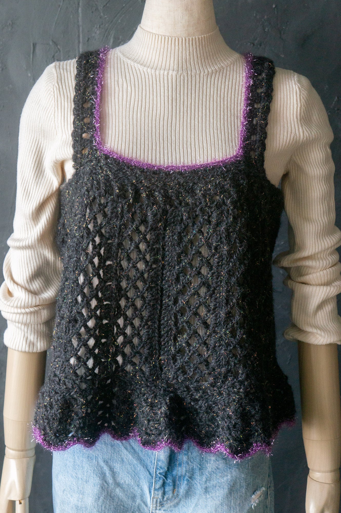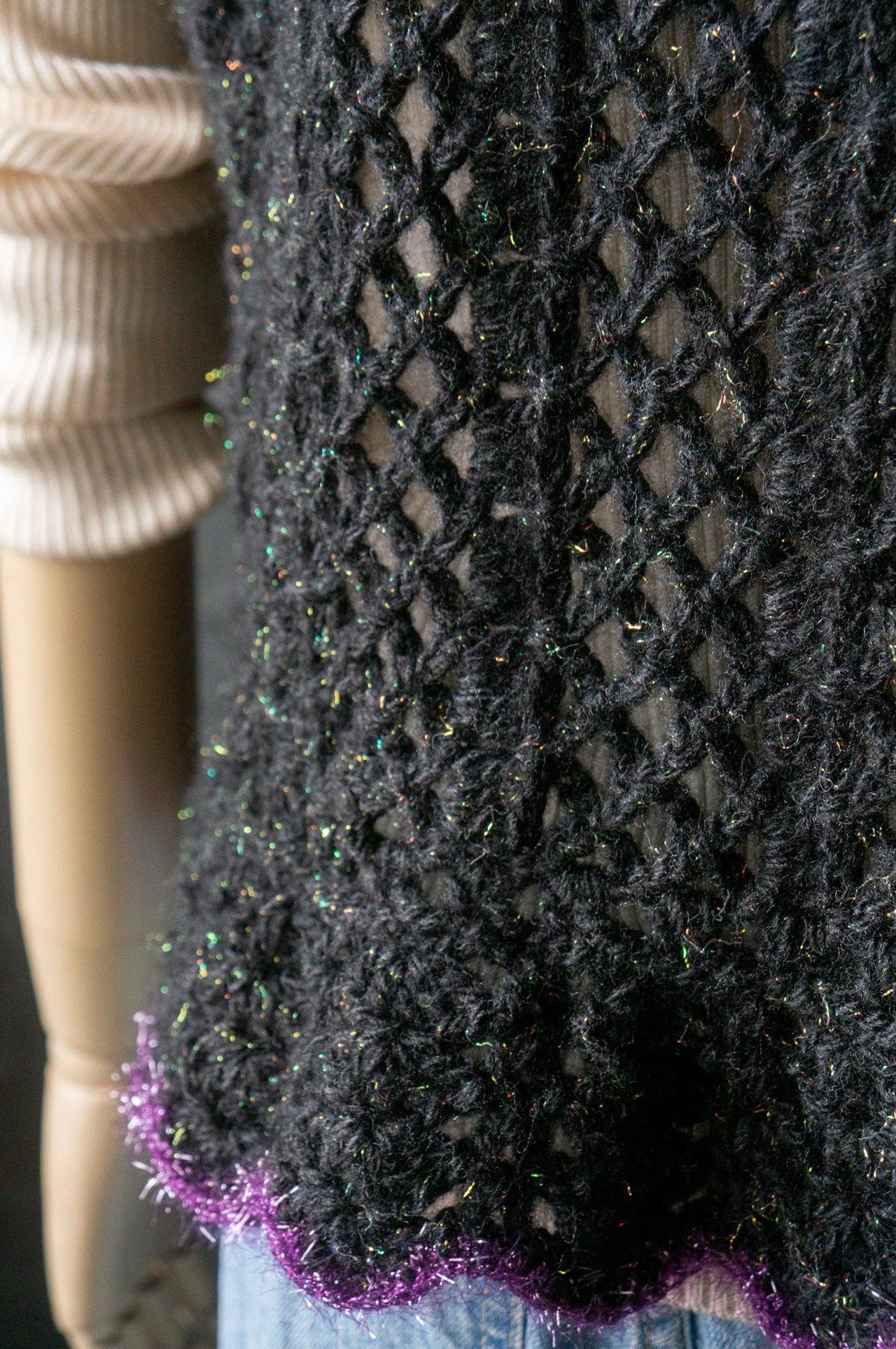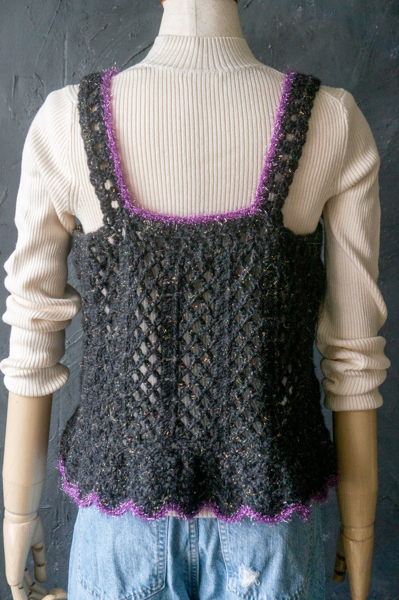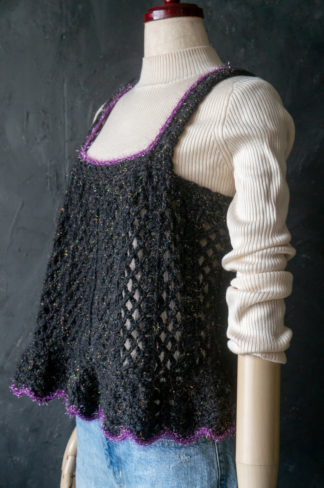 【France - Pollyanna】手編みのビスチェ ブラックラメ×パープルラメ