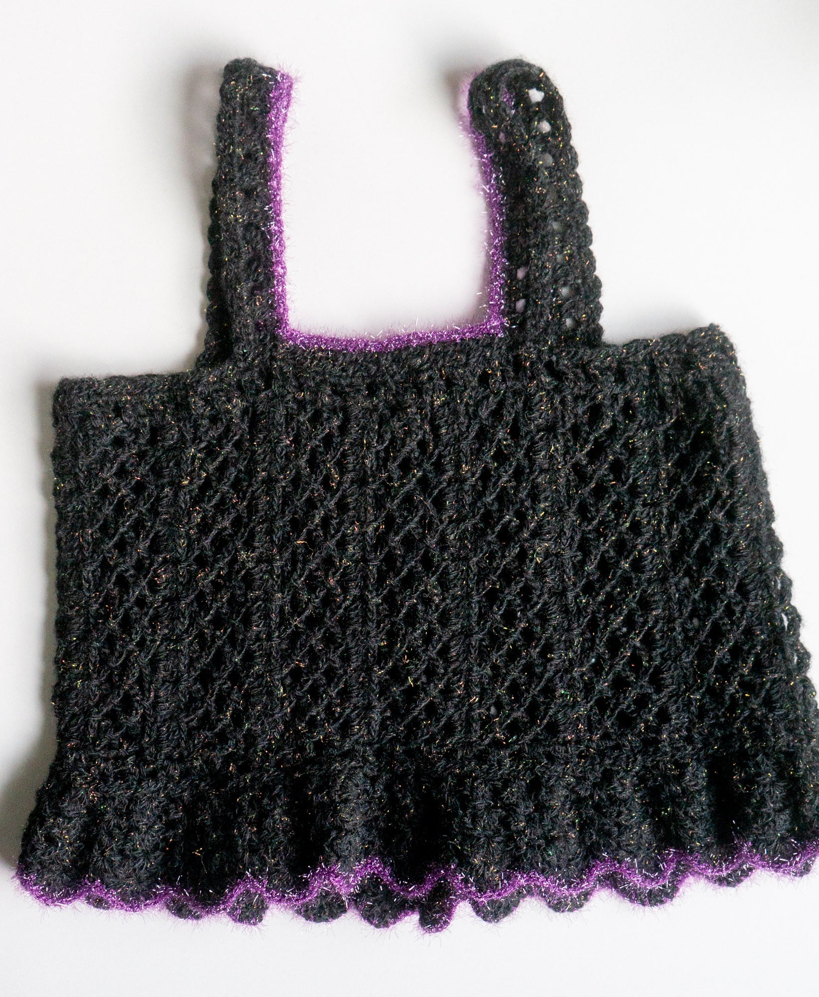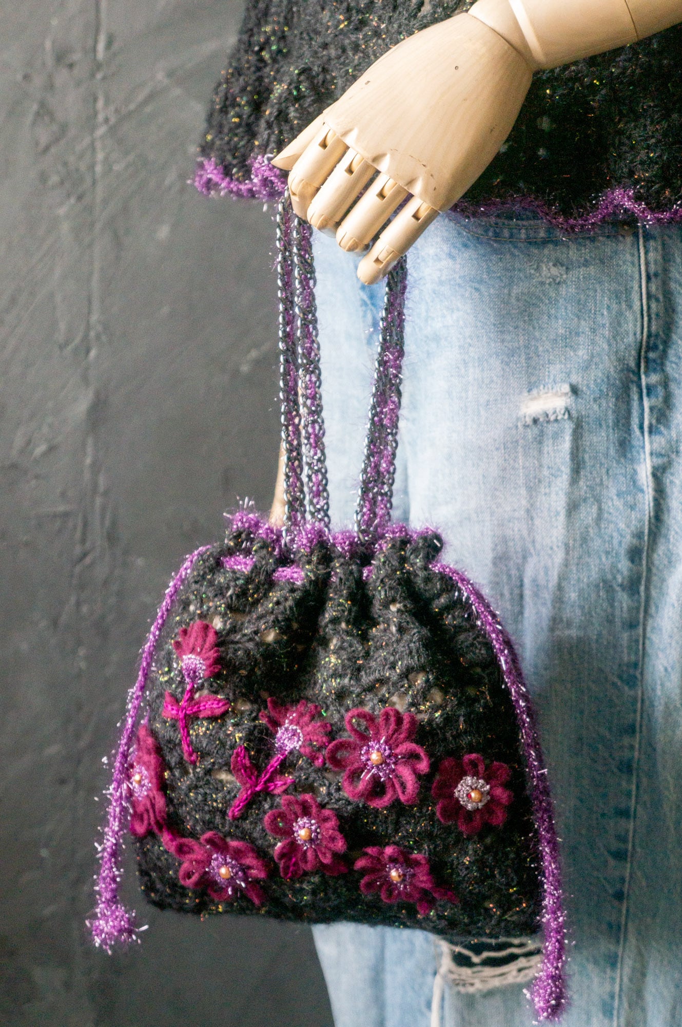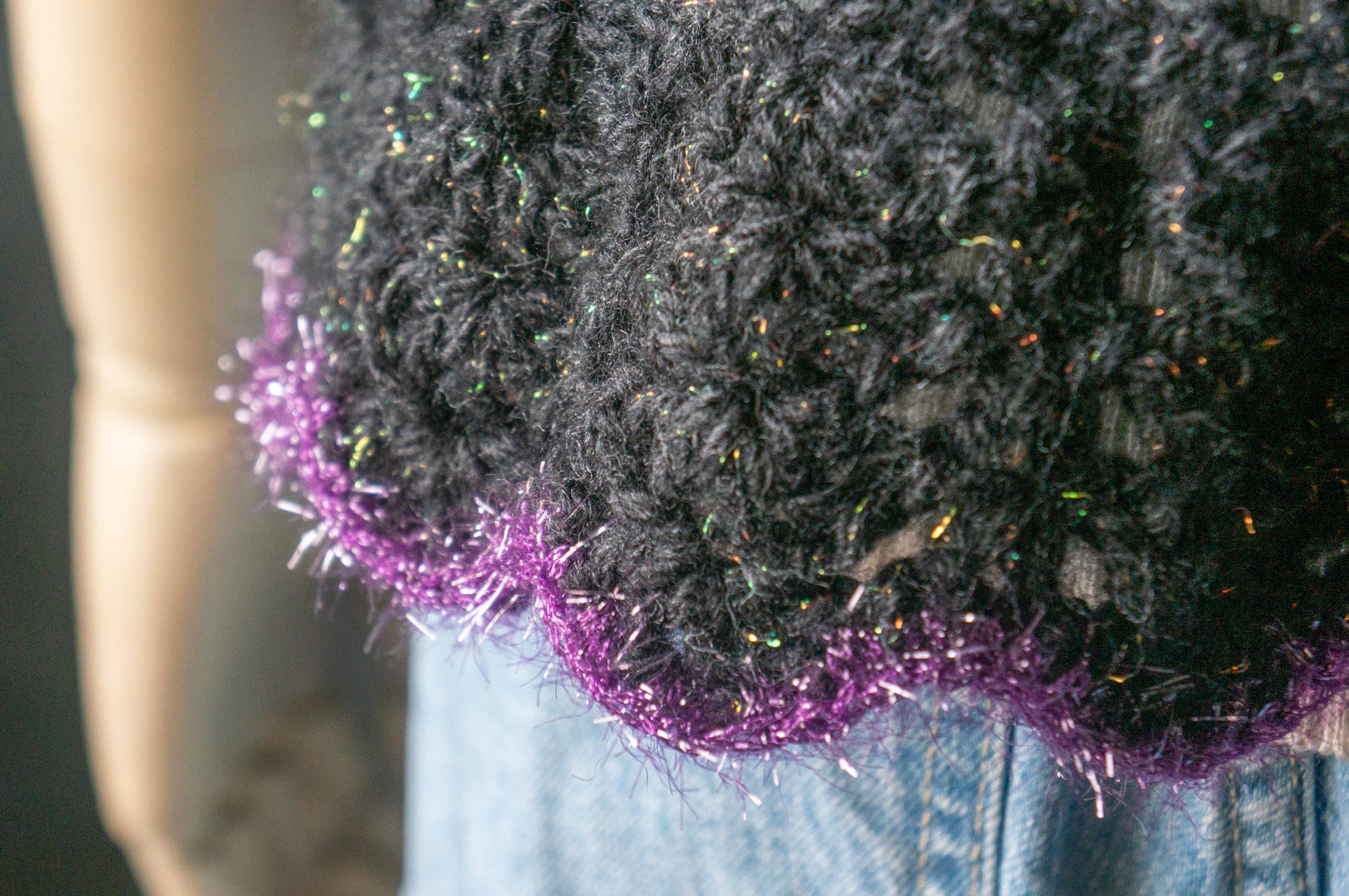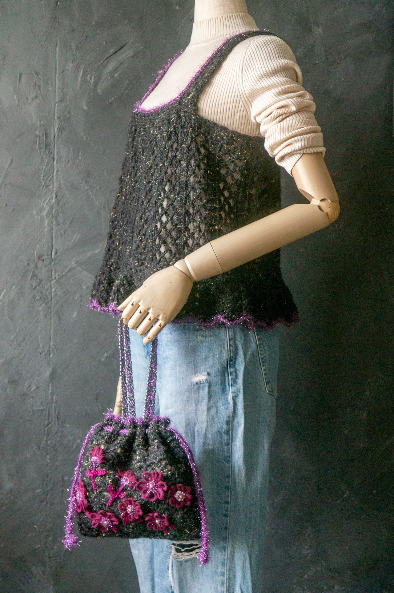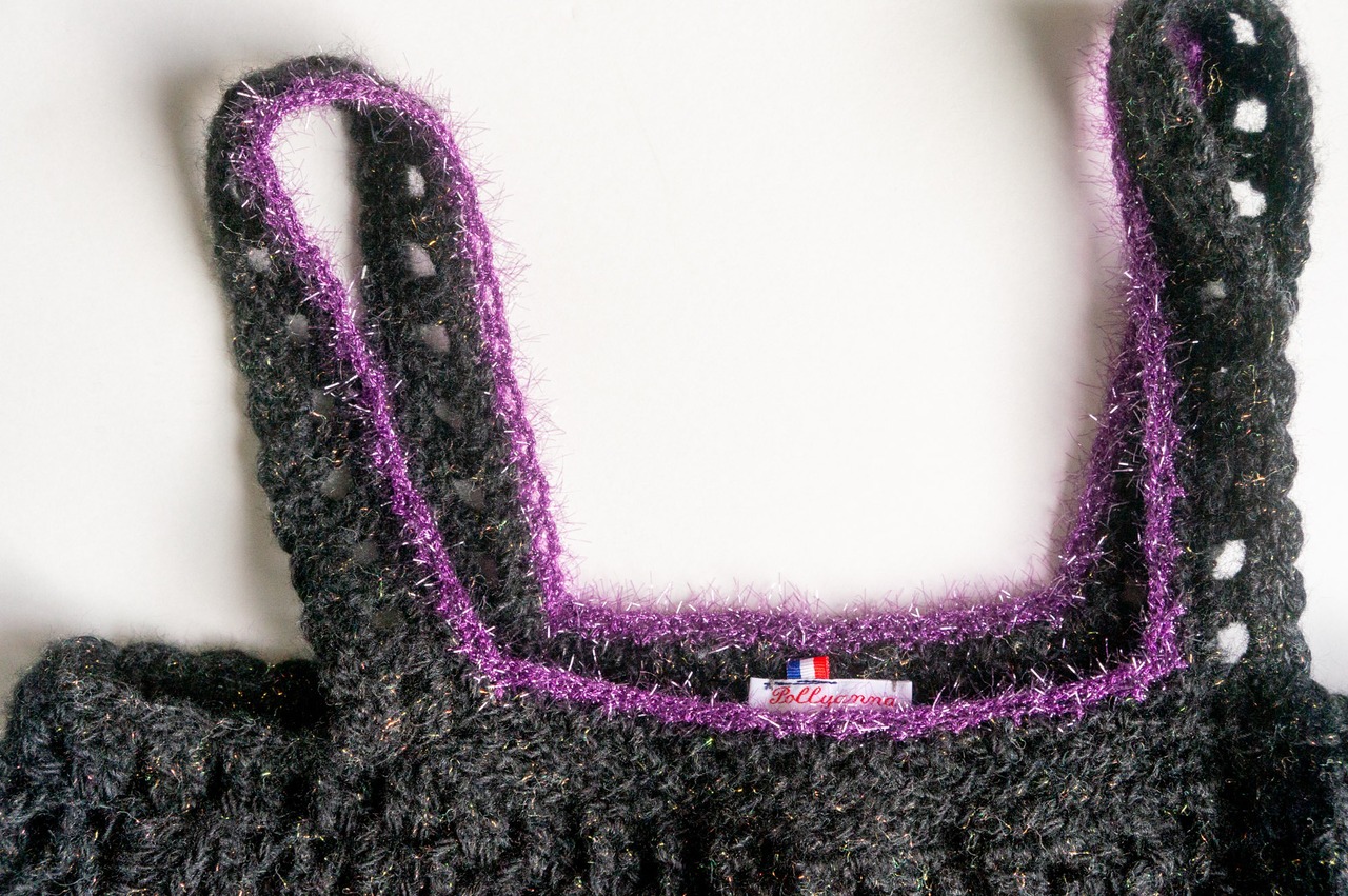 【France - Pollyanna】手編みのビスチェ ブラックラメ×パープルラメ