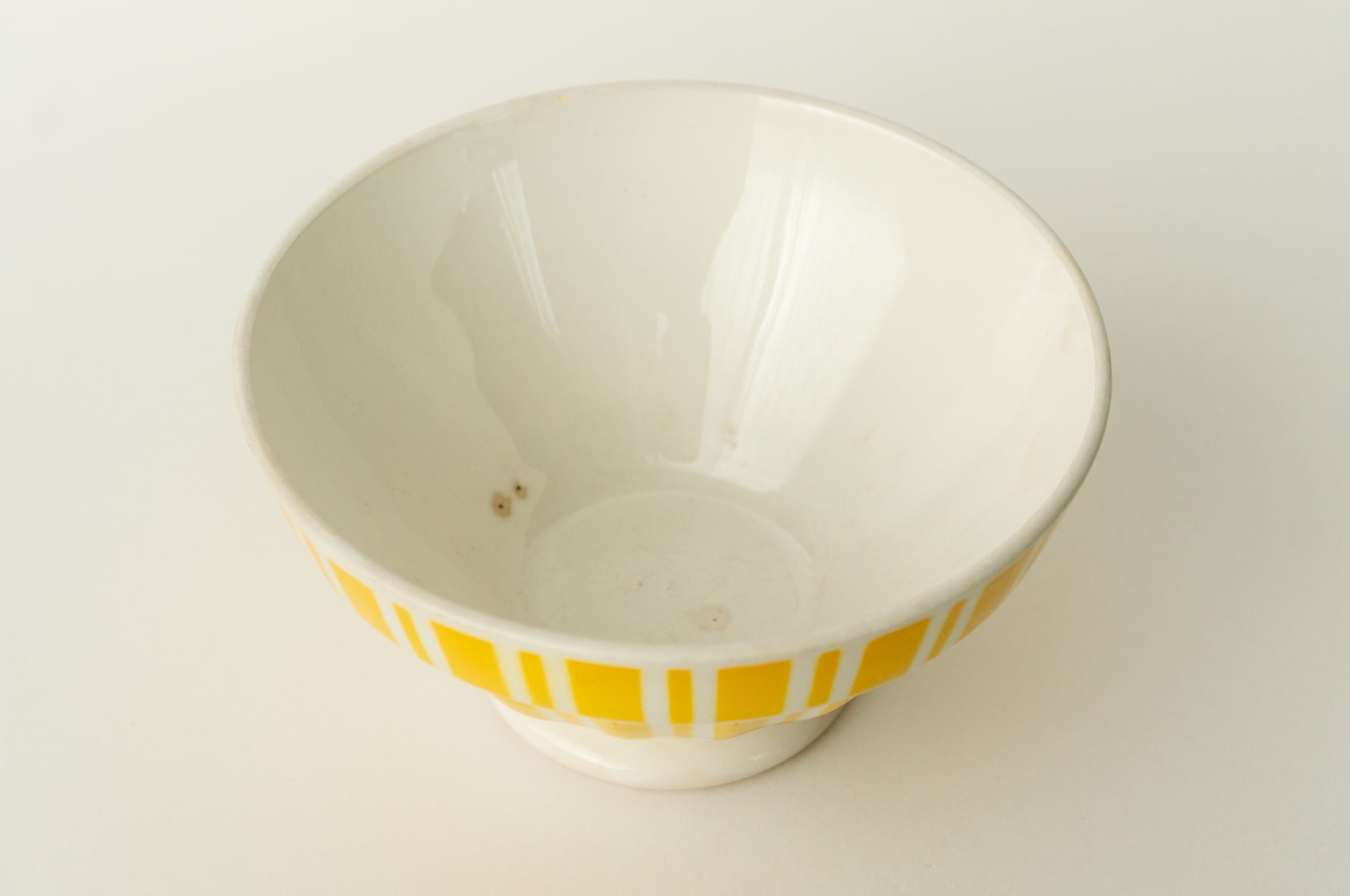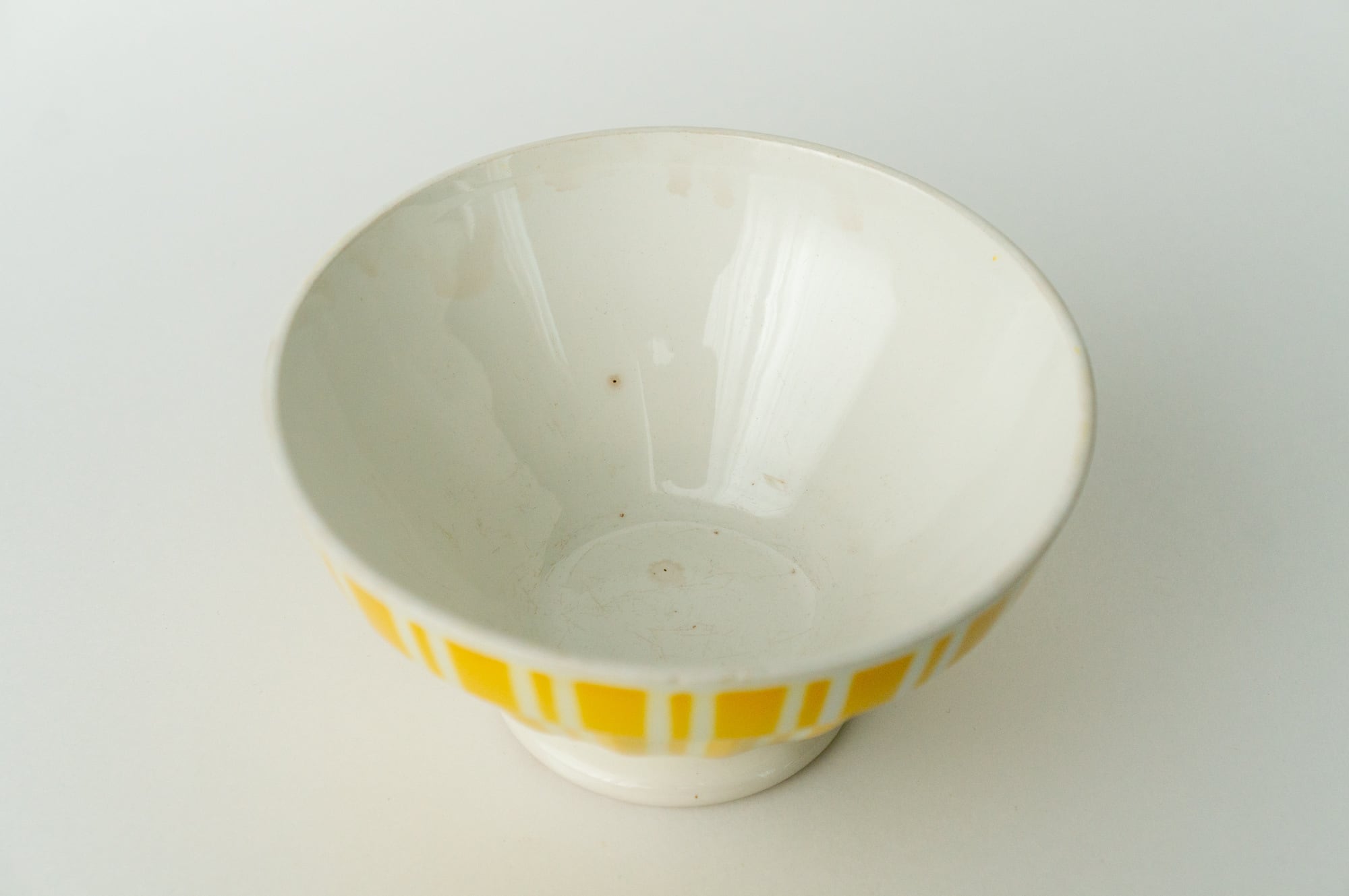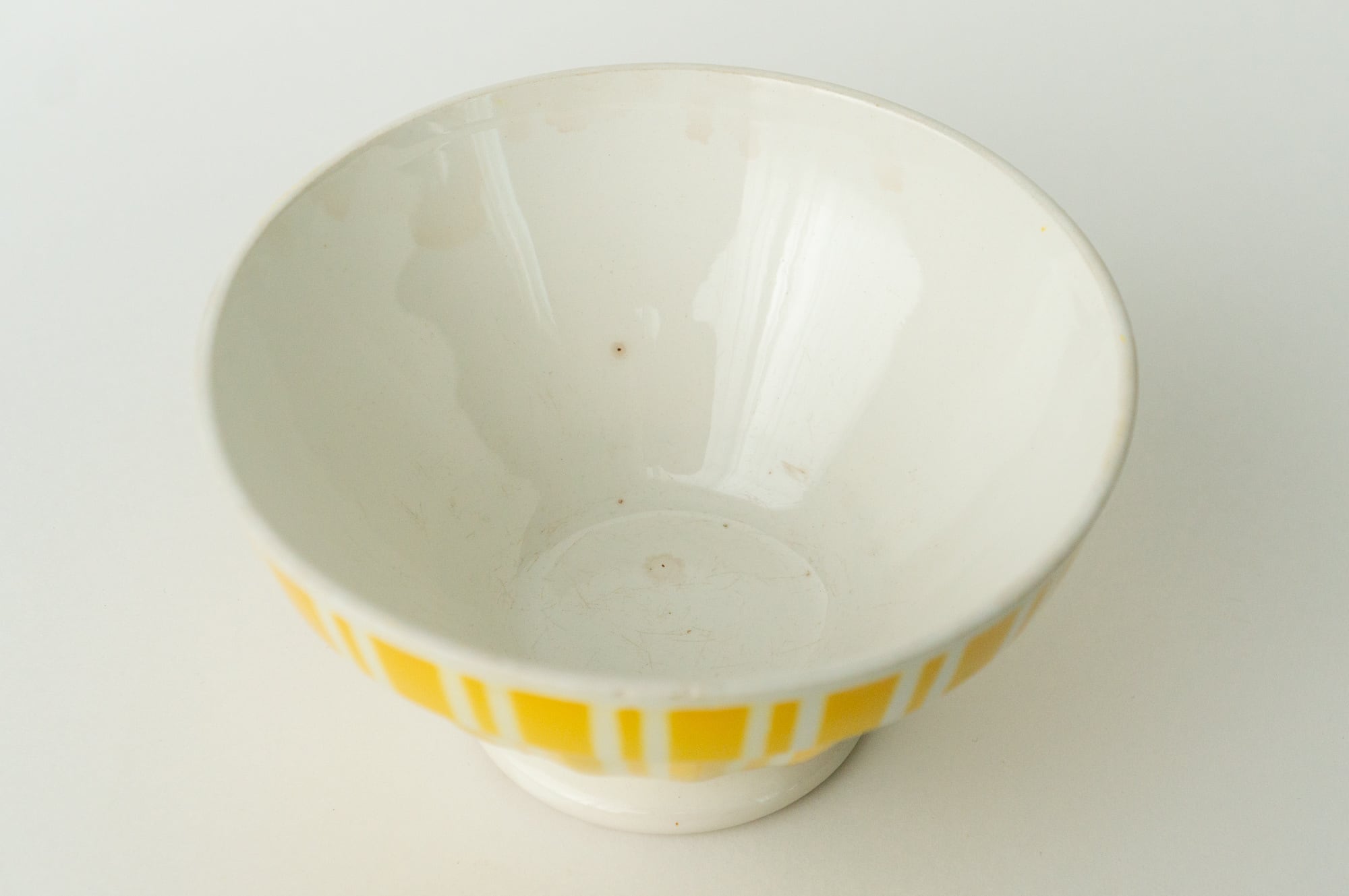 フランス ヴィンテージ カフェオレボウル|イエローストライプ(Digoin & Sarreguemines 推定)
