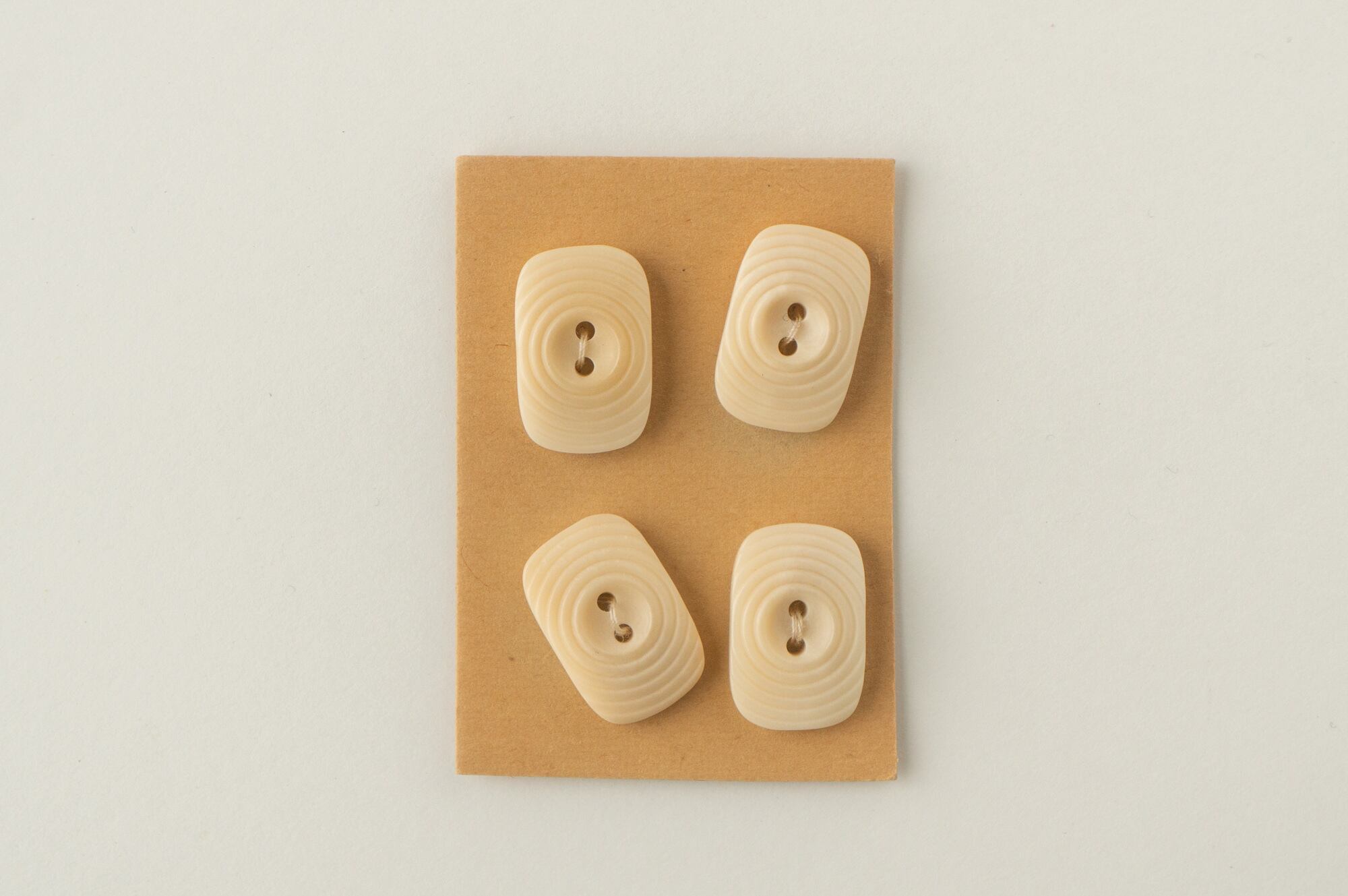 フランス ヴィンテージボタン 4個セット|波紋ラインの角丸長方形(クリームベージュ)