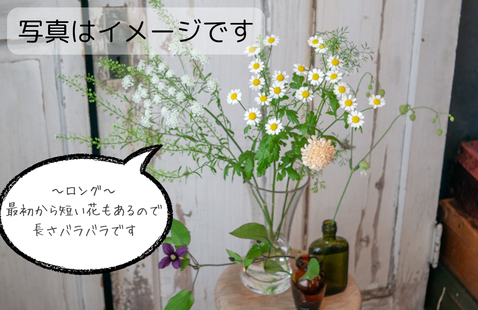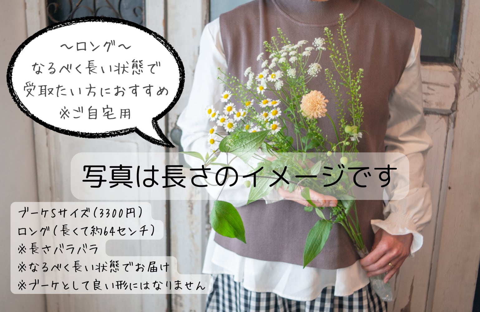 ●Long-は長くて64センチ、長さバラバラのためブーケにはできません。ご自宅用になるべく長い状態でお花をご希望の方におすすめです。(送料100サイズ1530円〜)