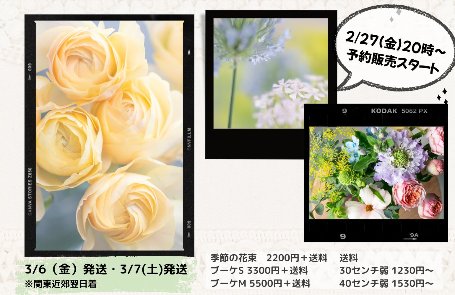 【3/7(土)発送、8(日)着限定】トコリエの季節の花束