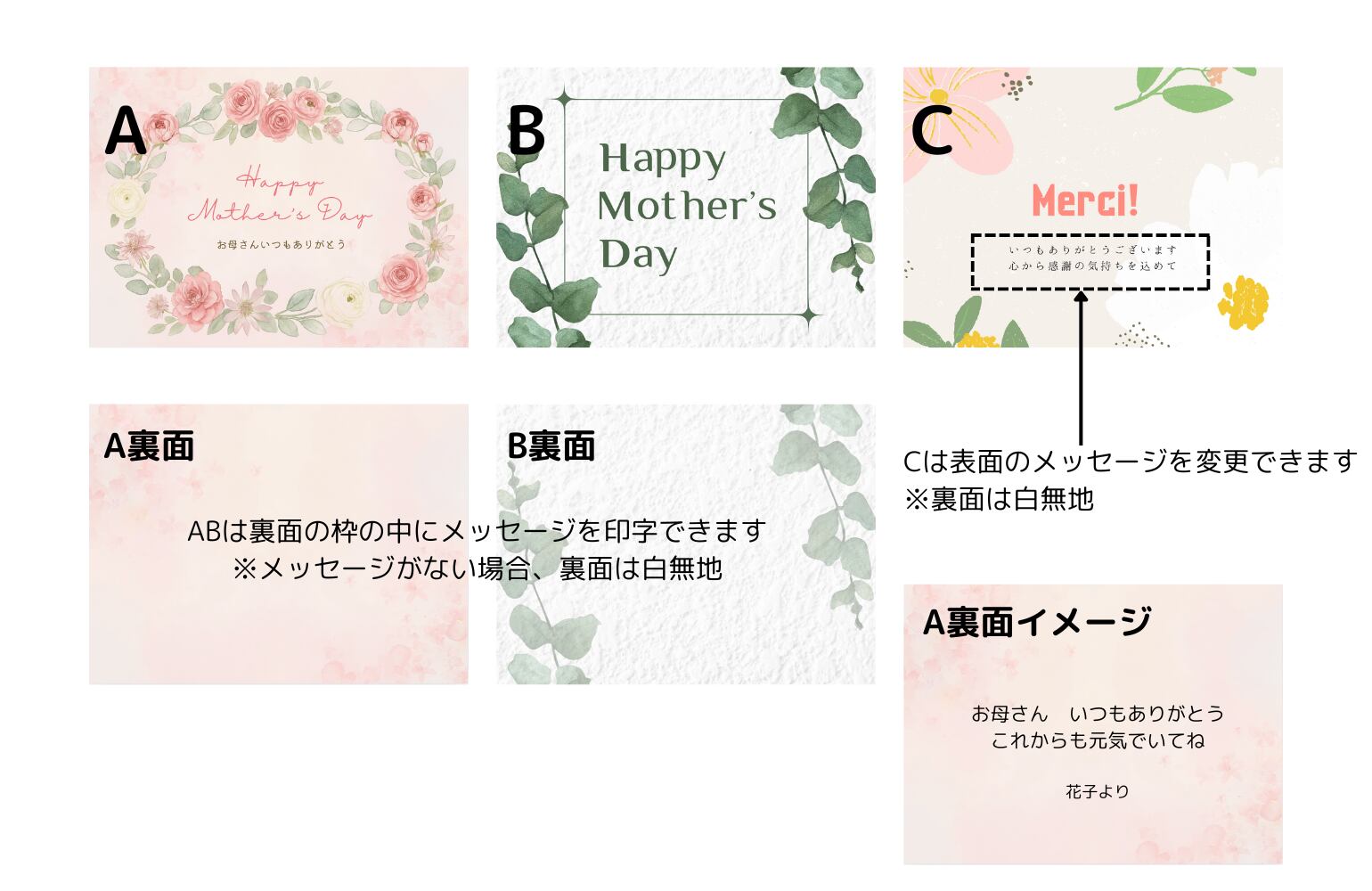 特にメッセージが無い場合はA〜Cの表面のみのカード(裏は白無地)をお花と一緒にお届けします。