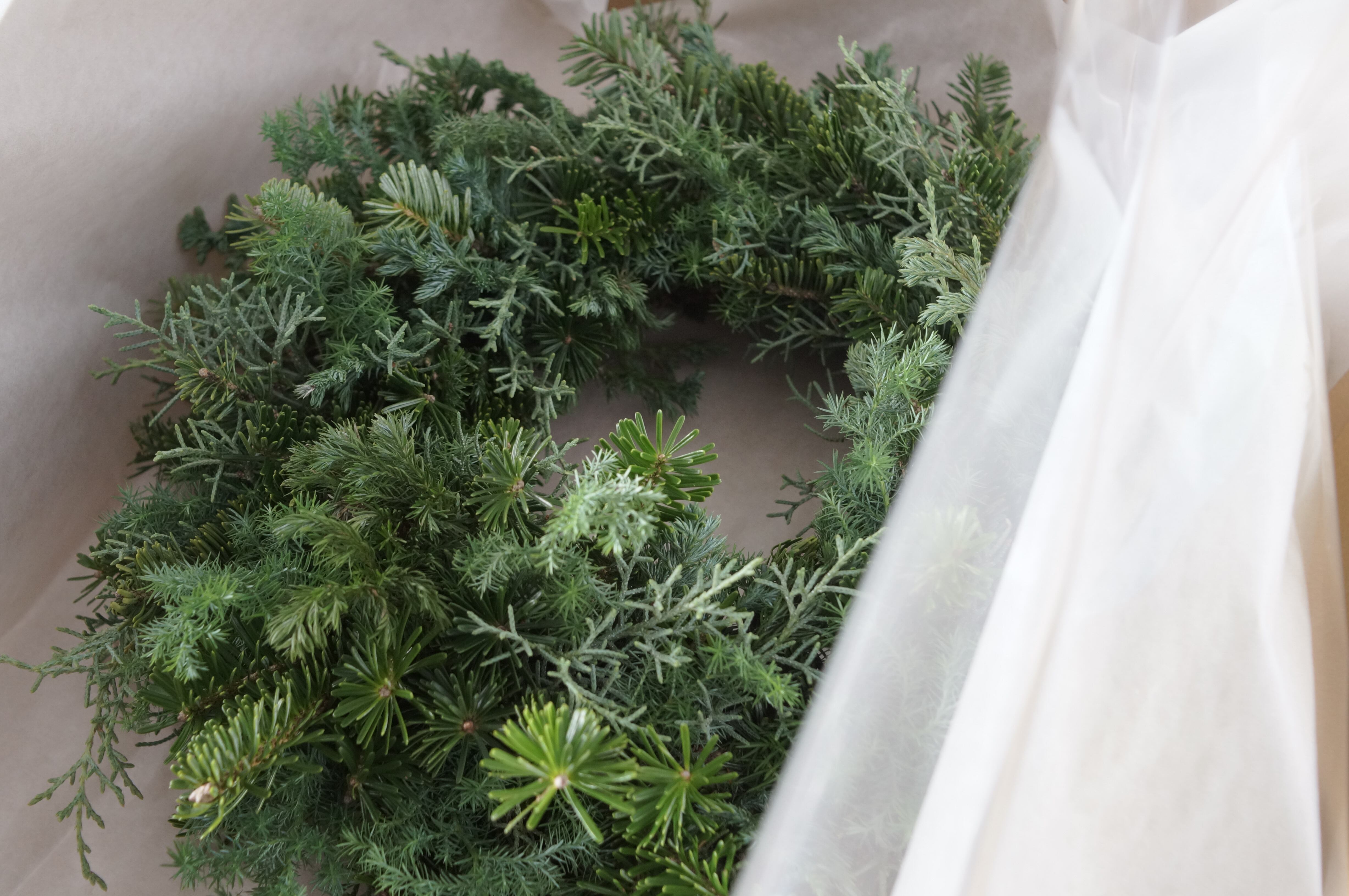 あえて他の花材は使わず、針葉樹のみでお作りしました。