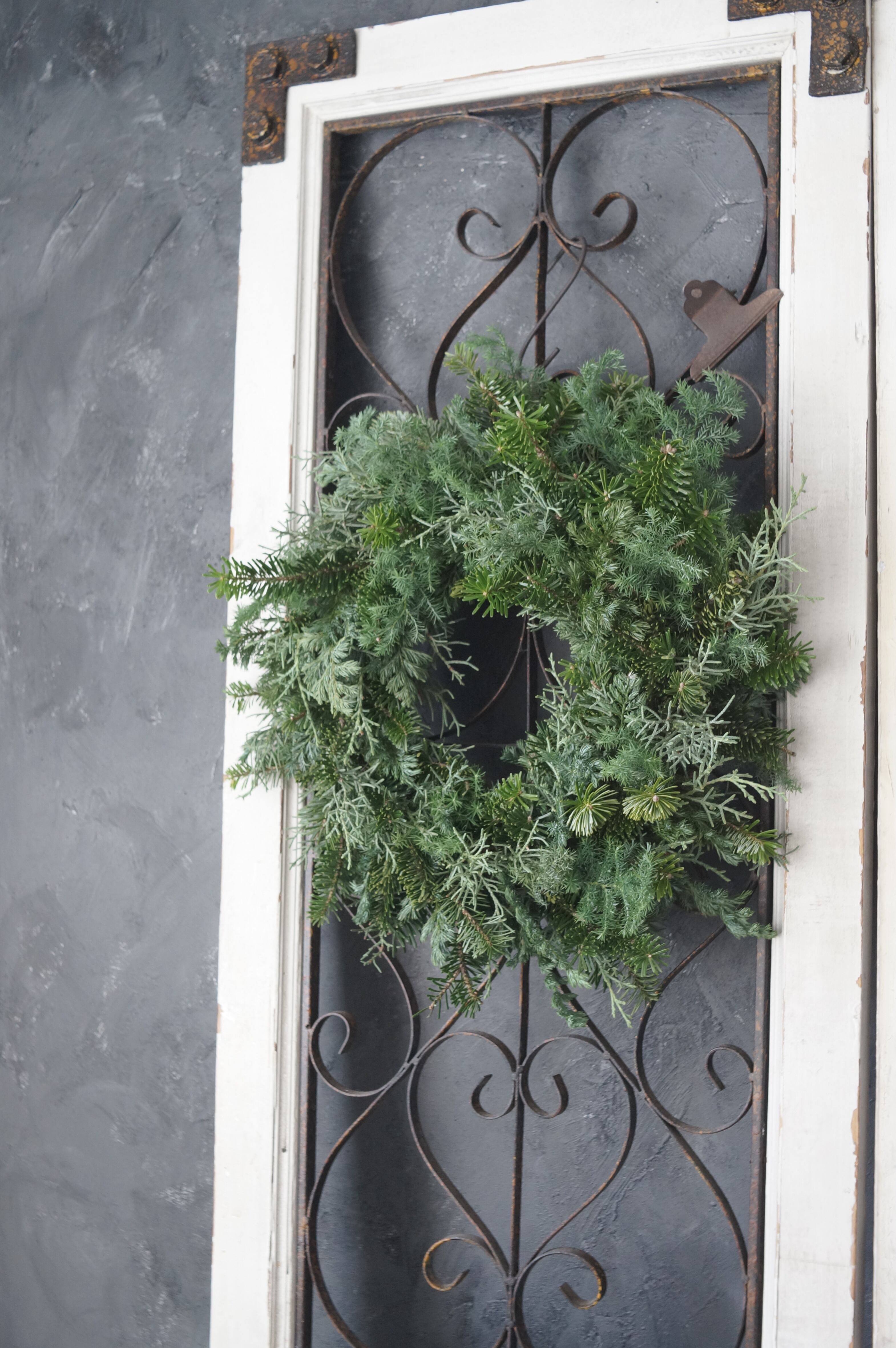香りのよい針葉樹を数種類用いてお作りしたリースです。