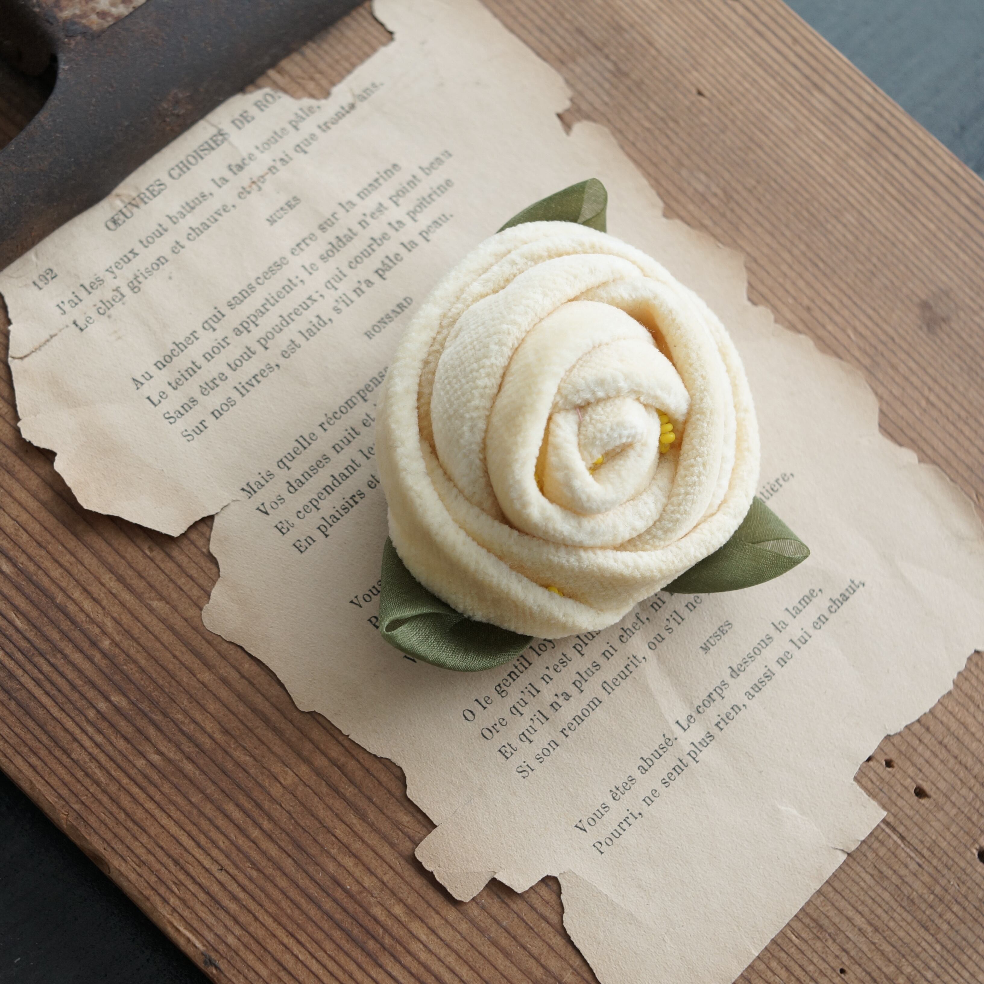 フランス在住のハンドメイドアーティスト、Pollyannaのバラのブローチ。