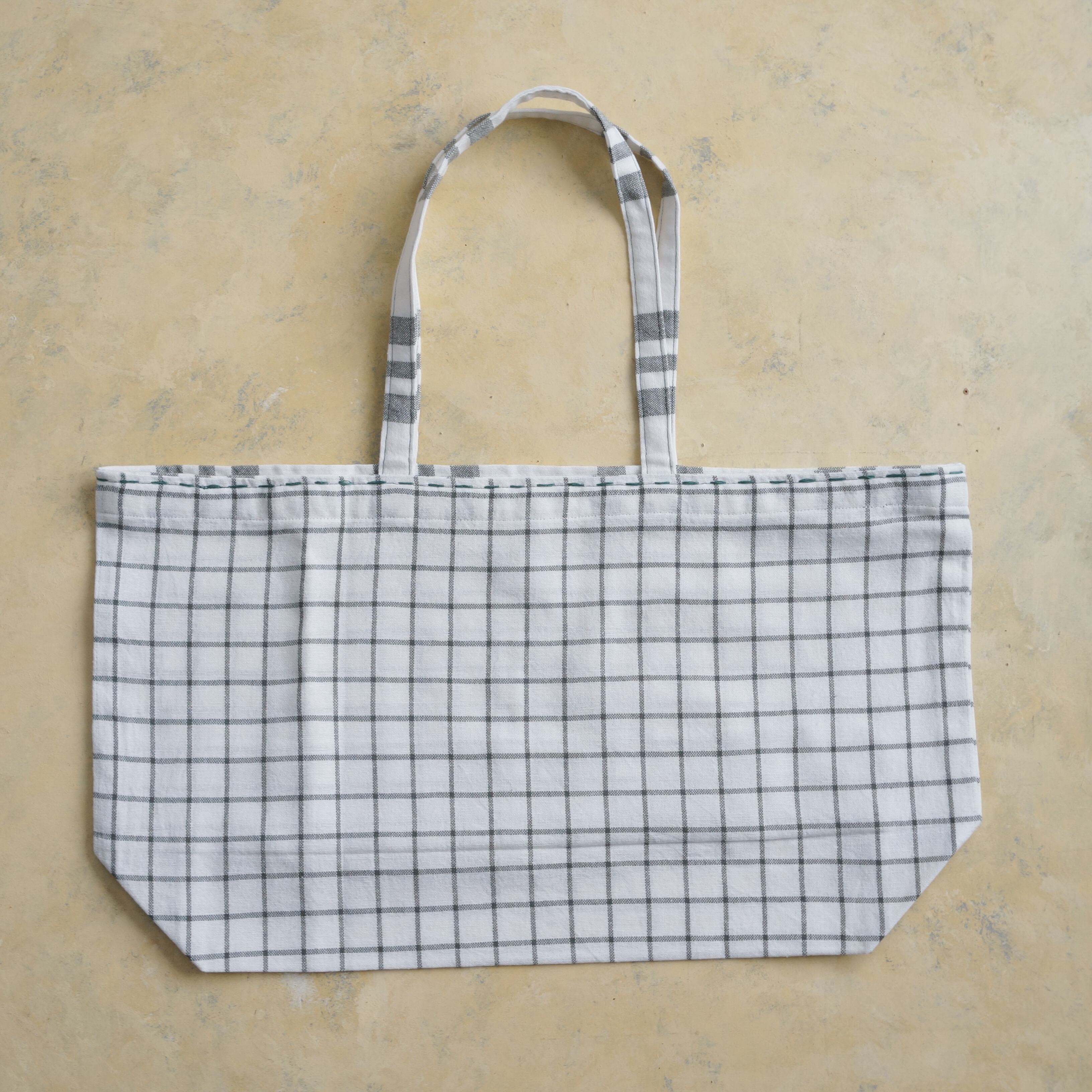 フランスのマルシェバッグ 白×モスグリーン ウインドゥペーン
