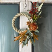 ユニークなワイルドフラワーを使った個性的な雰囲気のしめ縄を作りました。