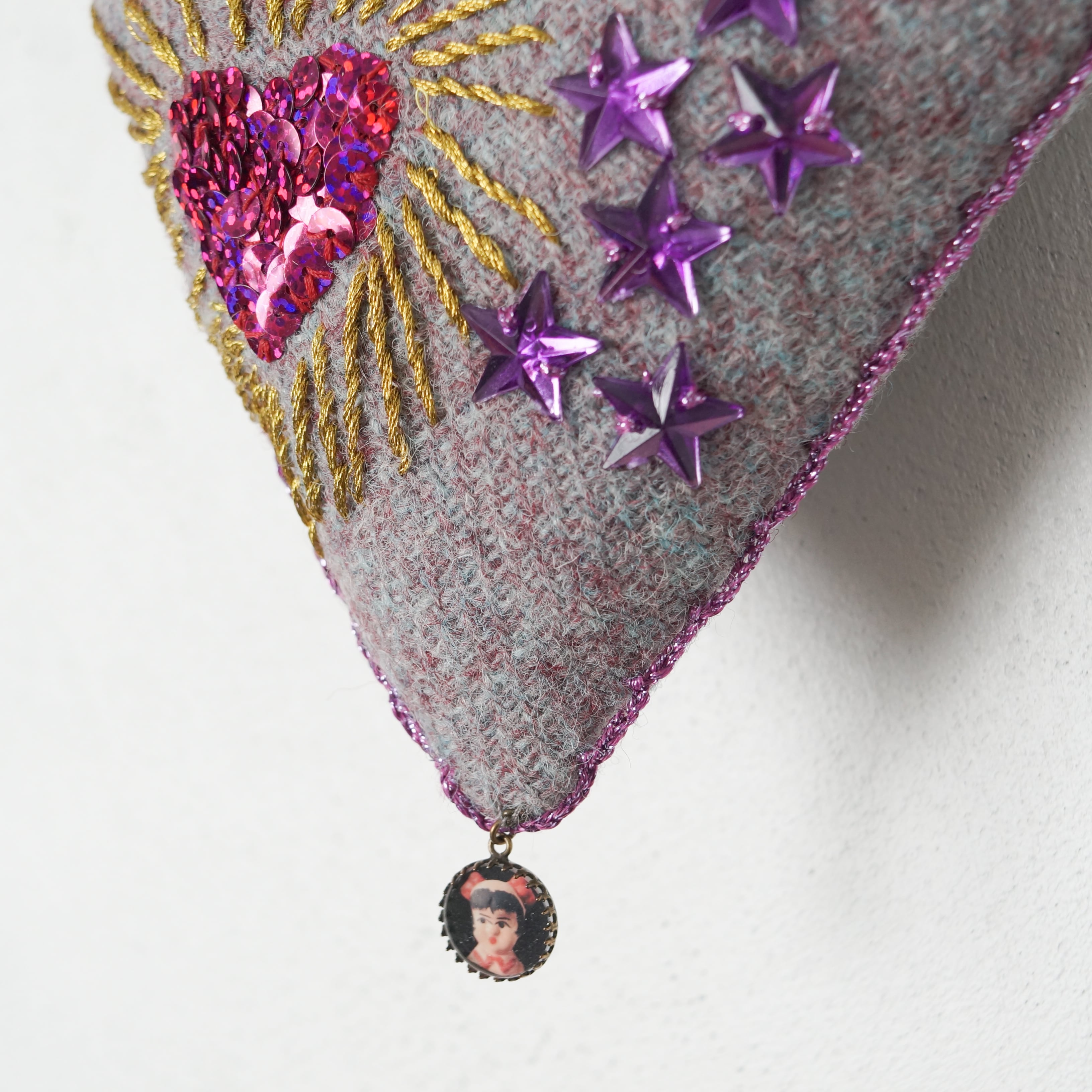 【France-Pollyanna】かわいい刺繍のハートオーナメント♡La vie