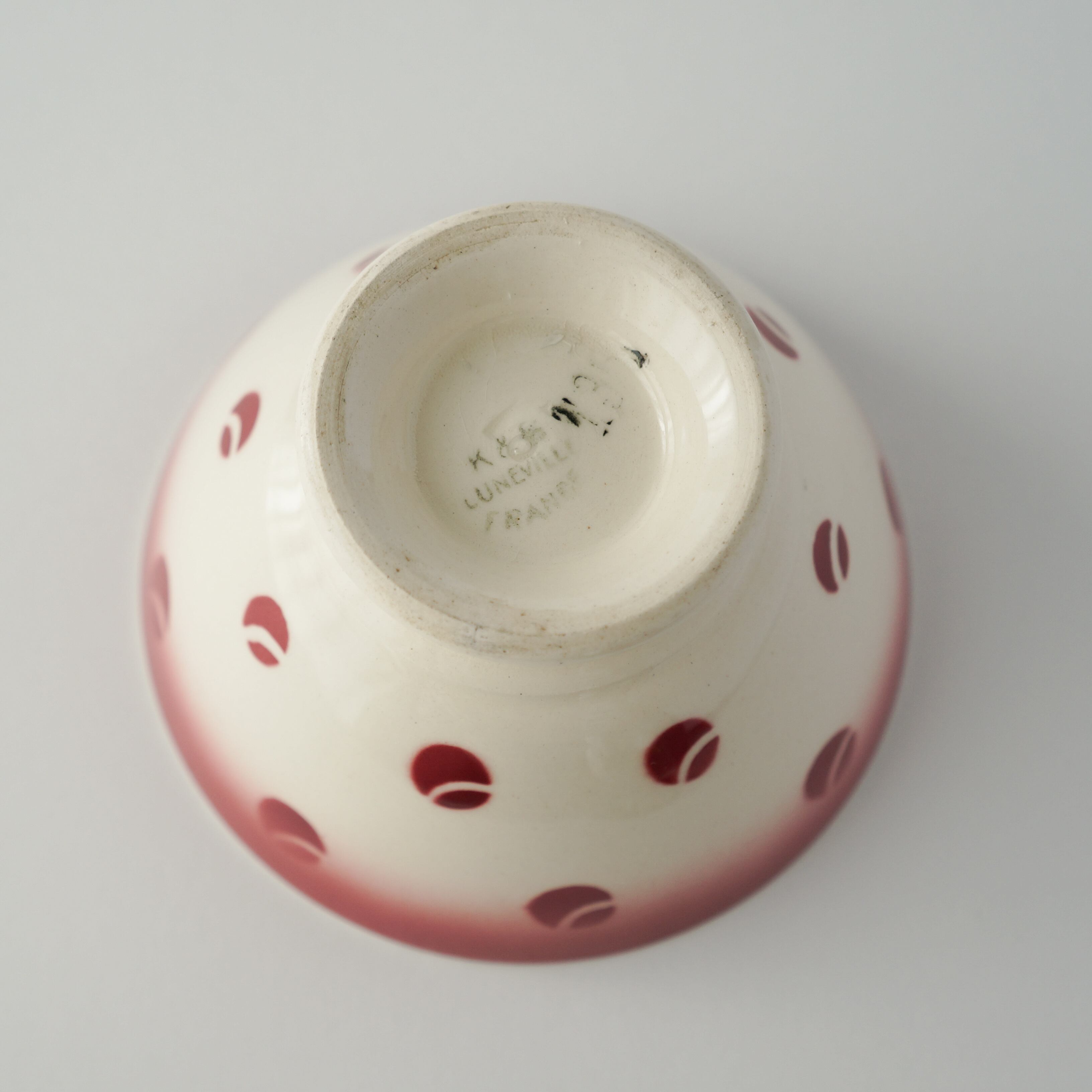 K&G Luneville製の水玉模様のステンシルのカフェオレボウル。