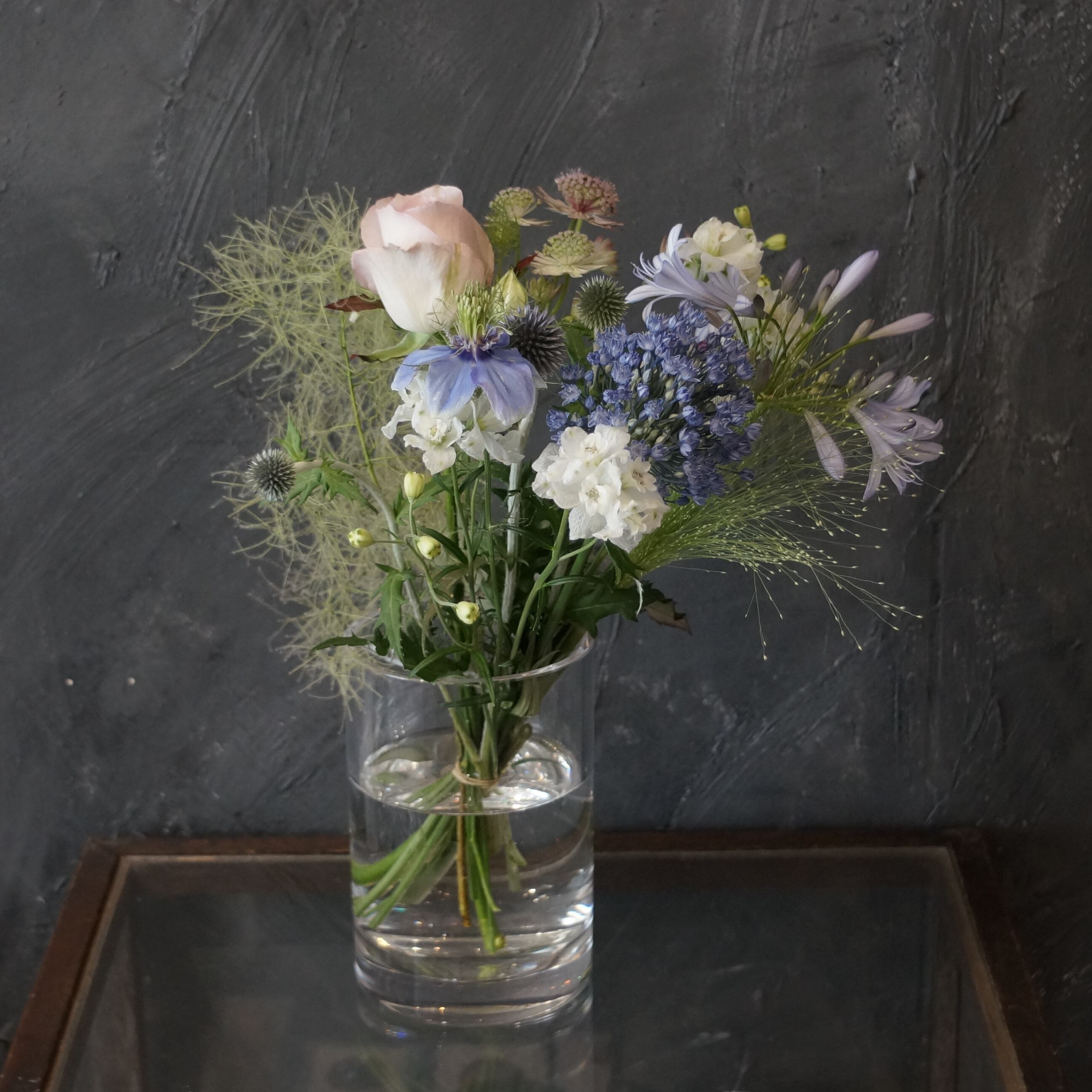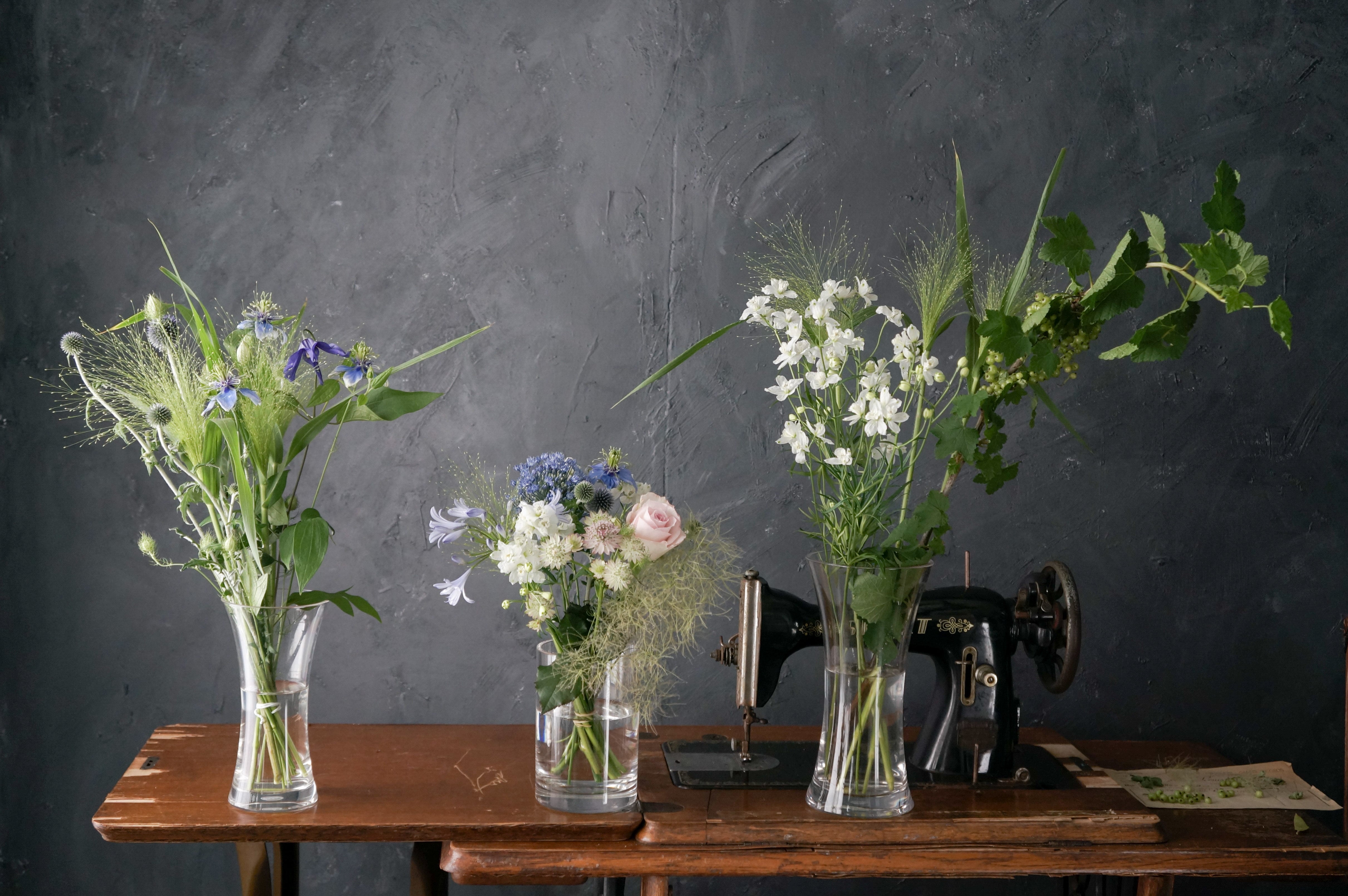 ブーケや投げ入れだと花瓶の倍くらいの長さの25〜40センチくらいのお花が比較的飾りやすいです。