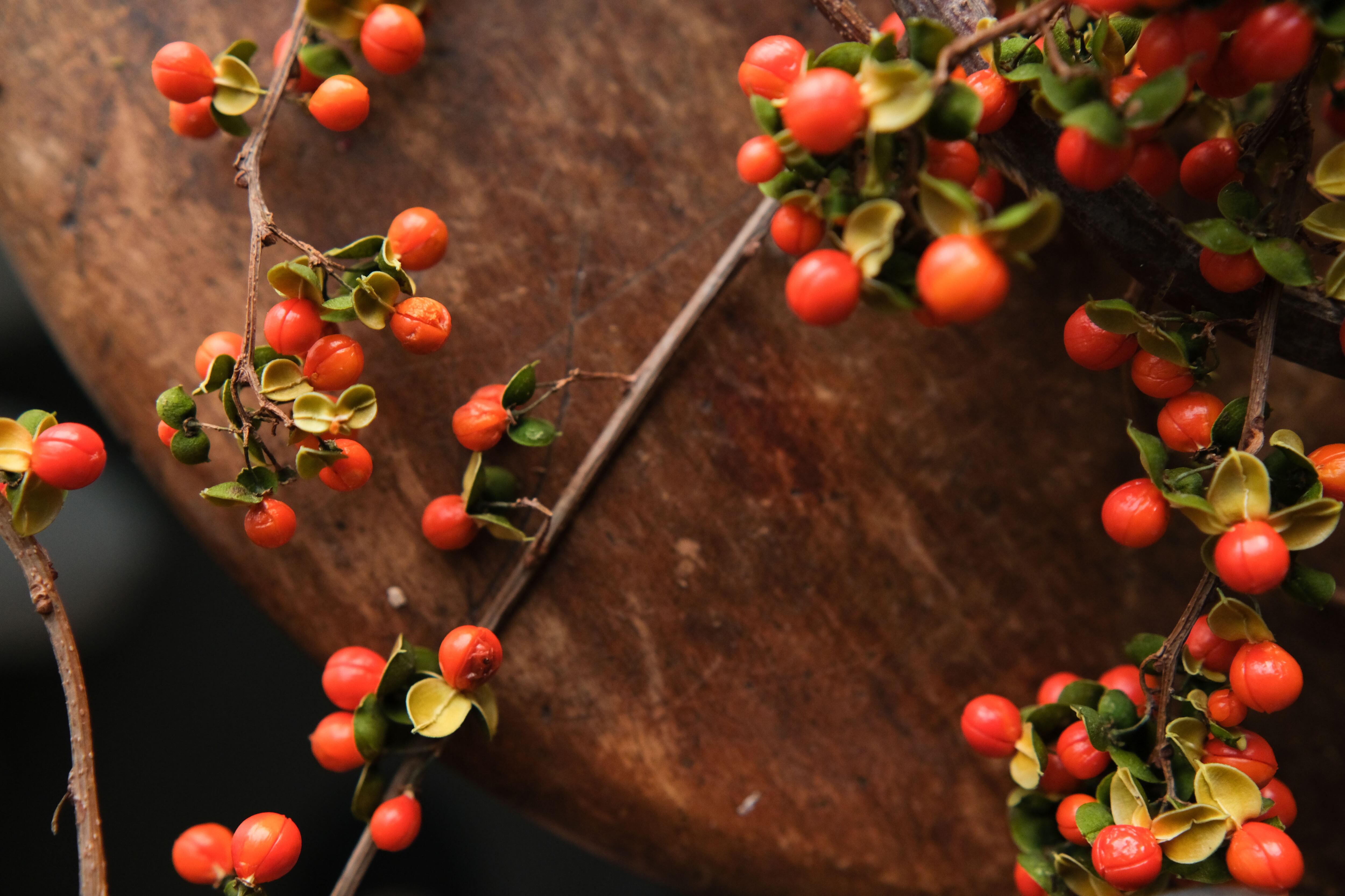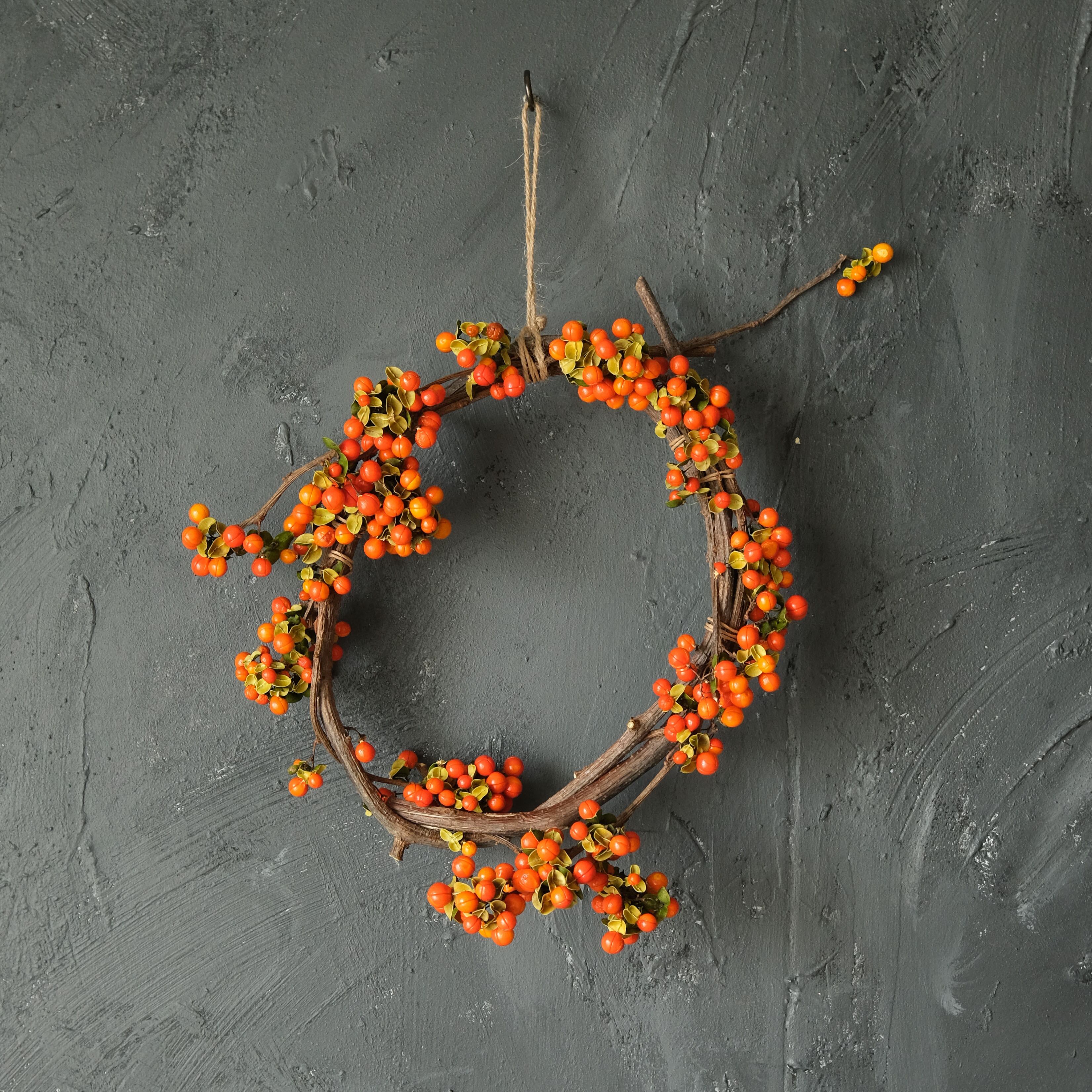 オレンジ色の実が かわいい、ツルウメモドキのリースです。