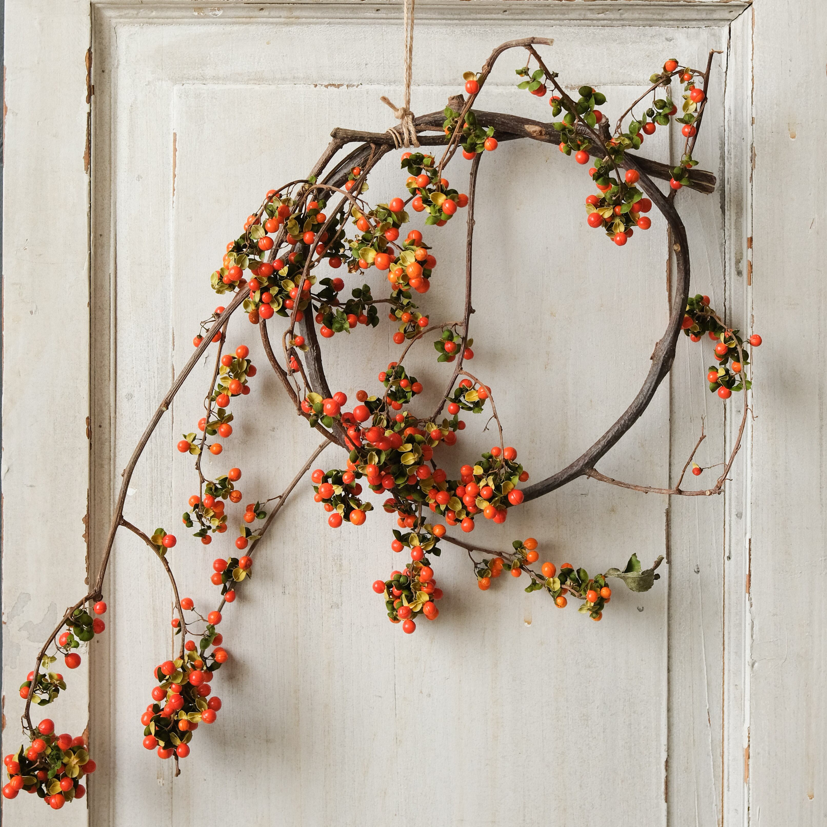 オレンジ色の実が かわいい、ツルウメモドキのリースです。