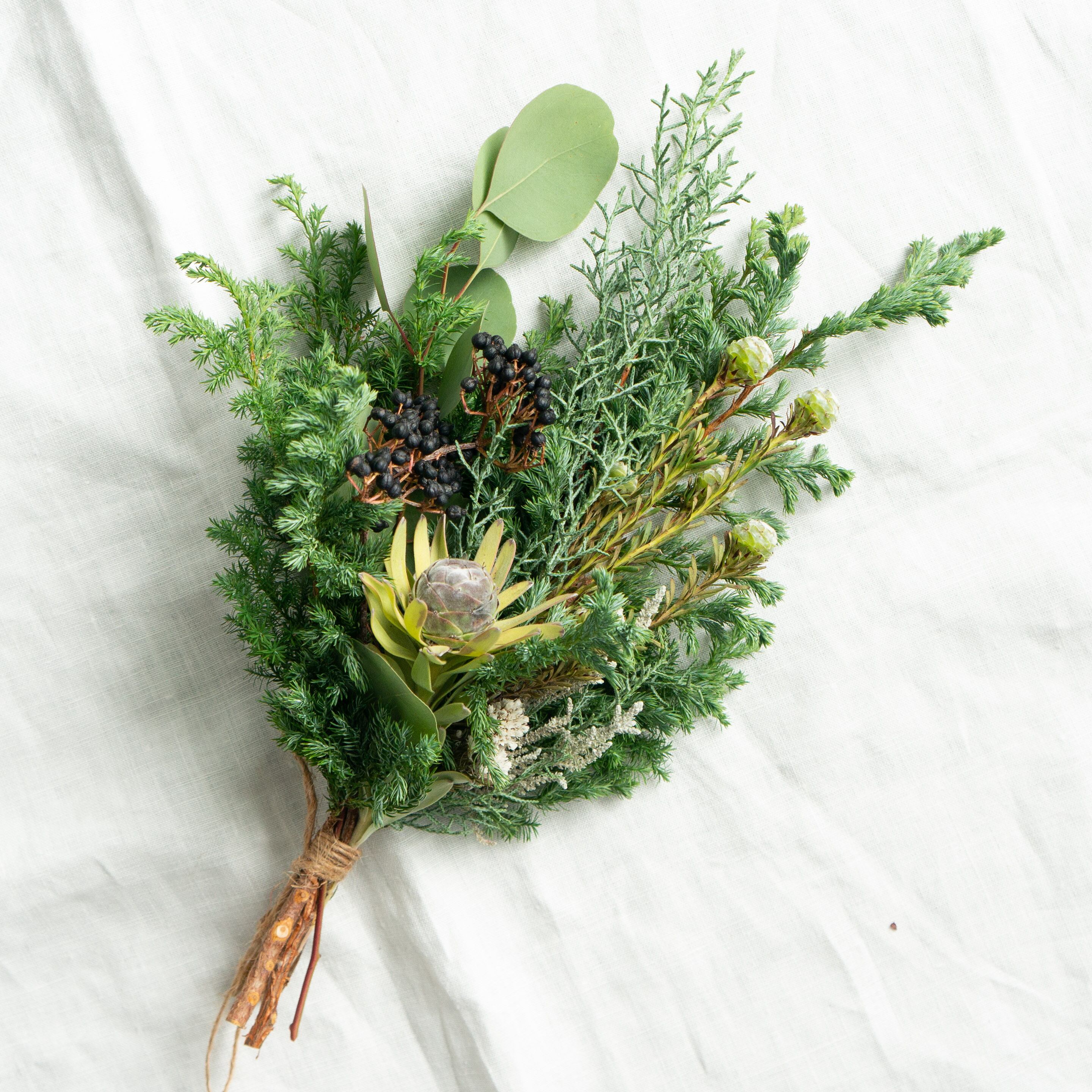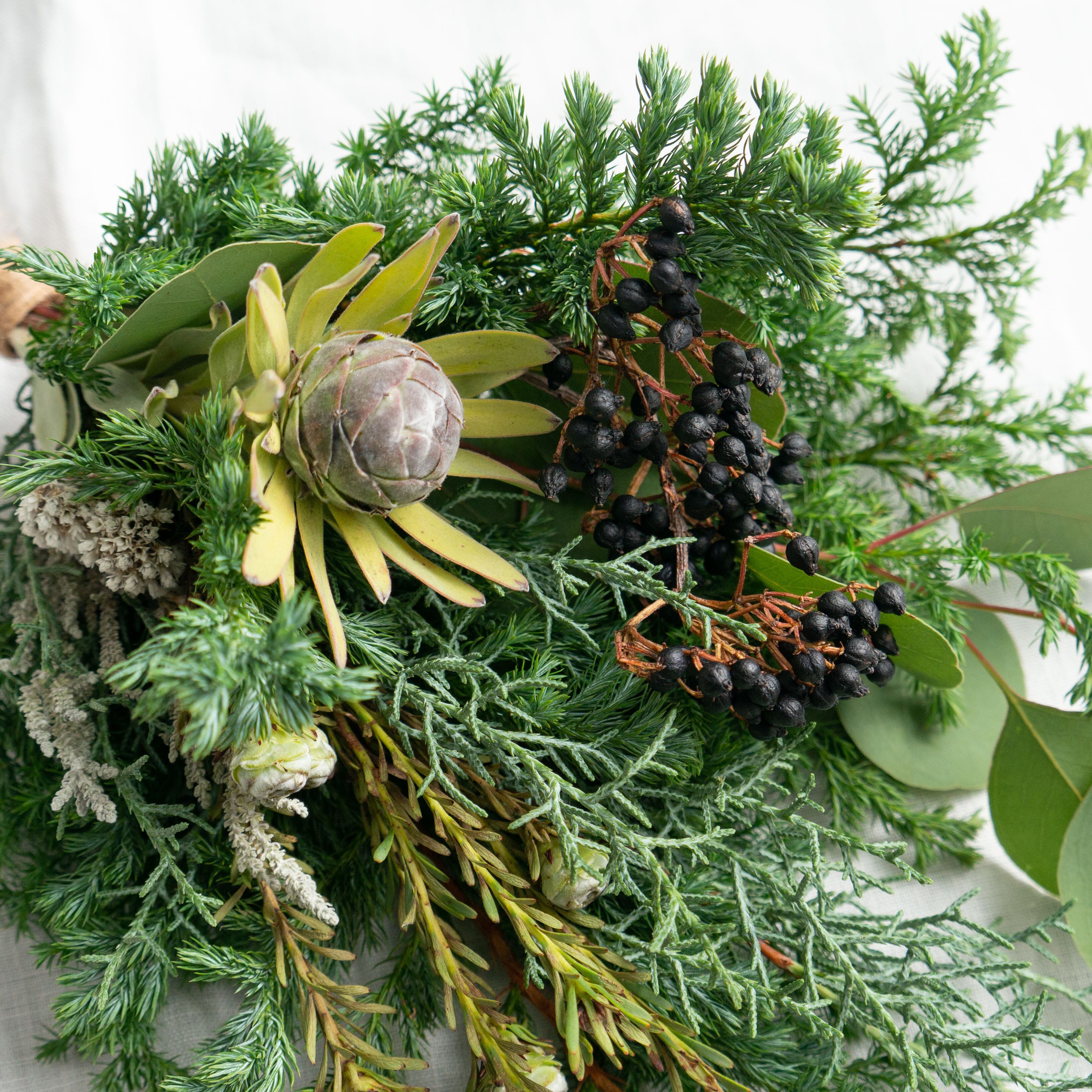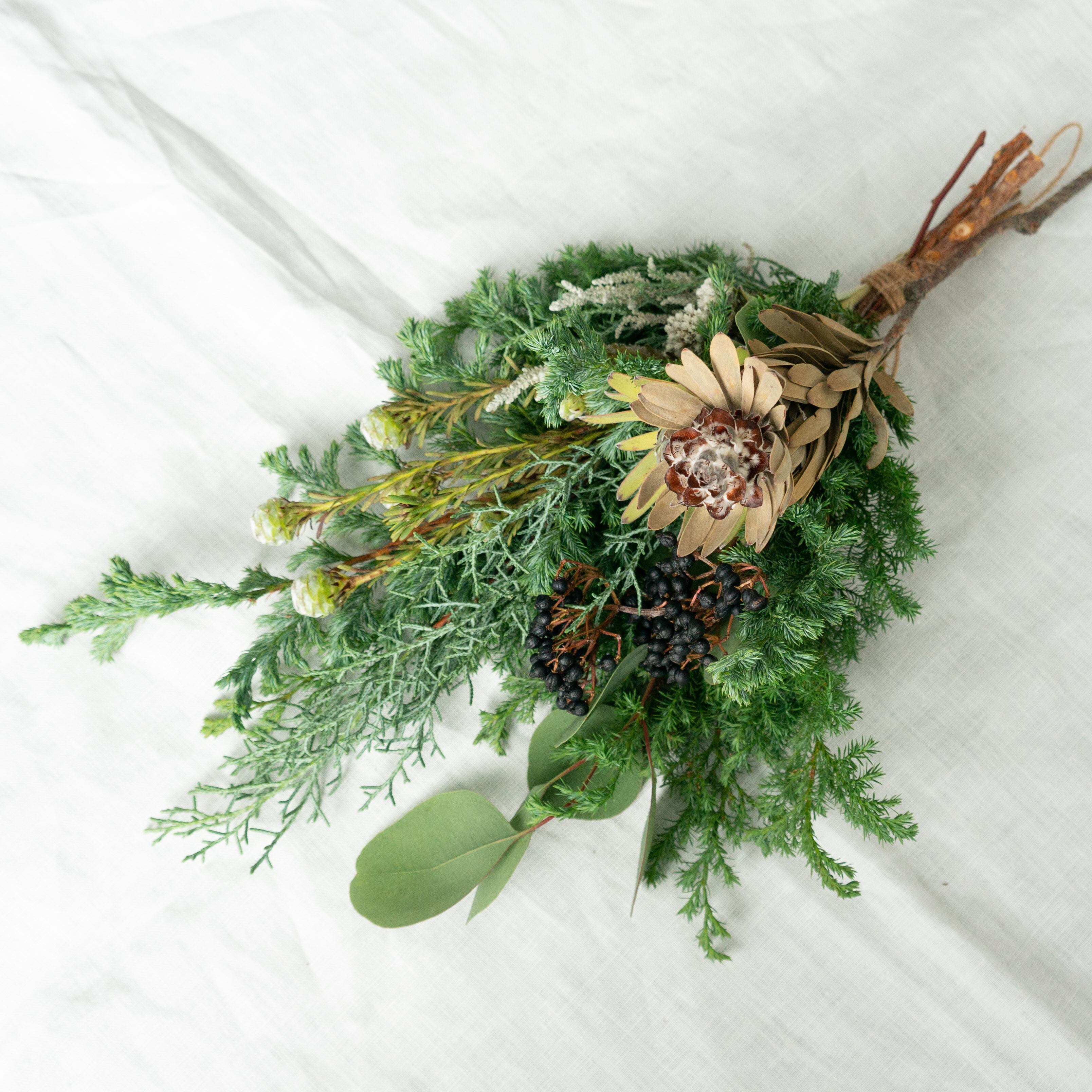 針葉樹をメインに、飾りやすいスワッグを作りました。