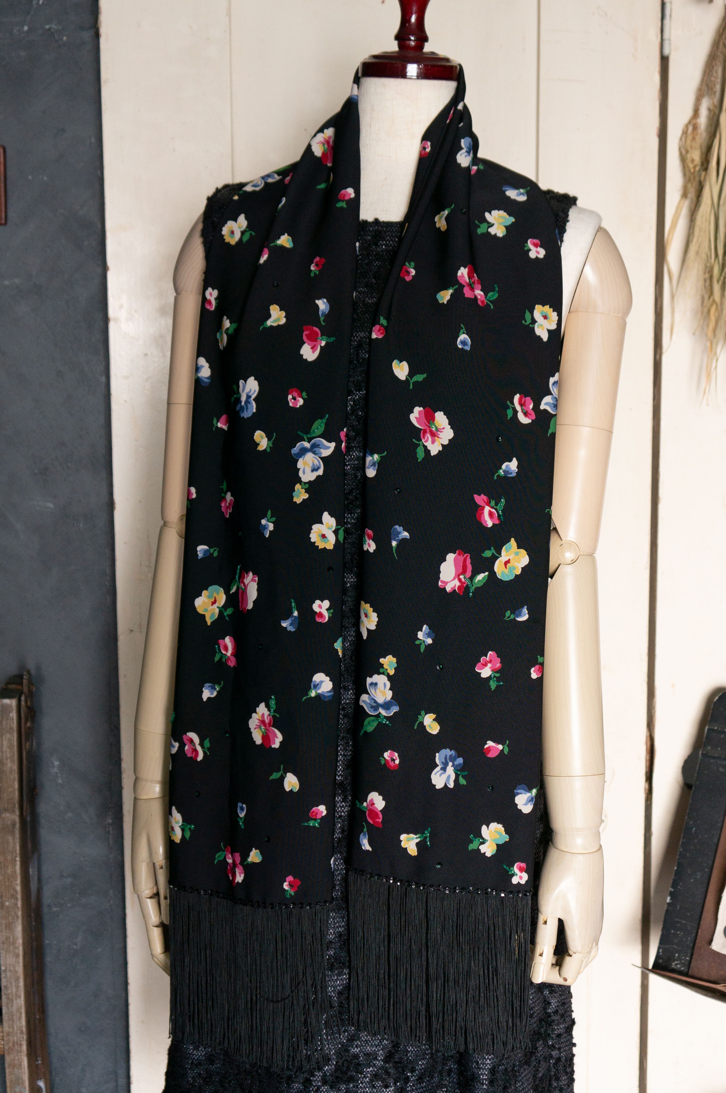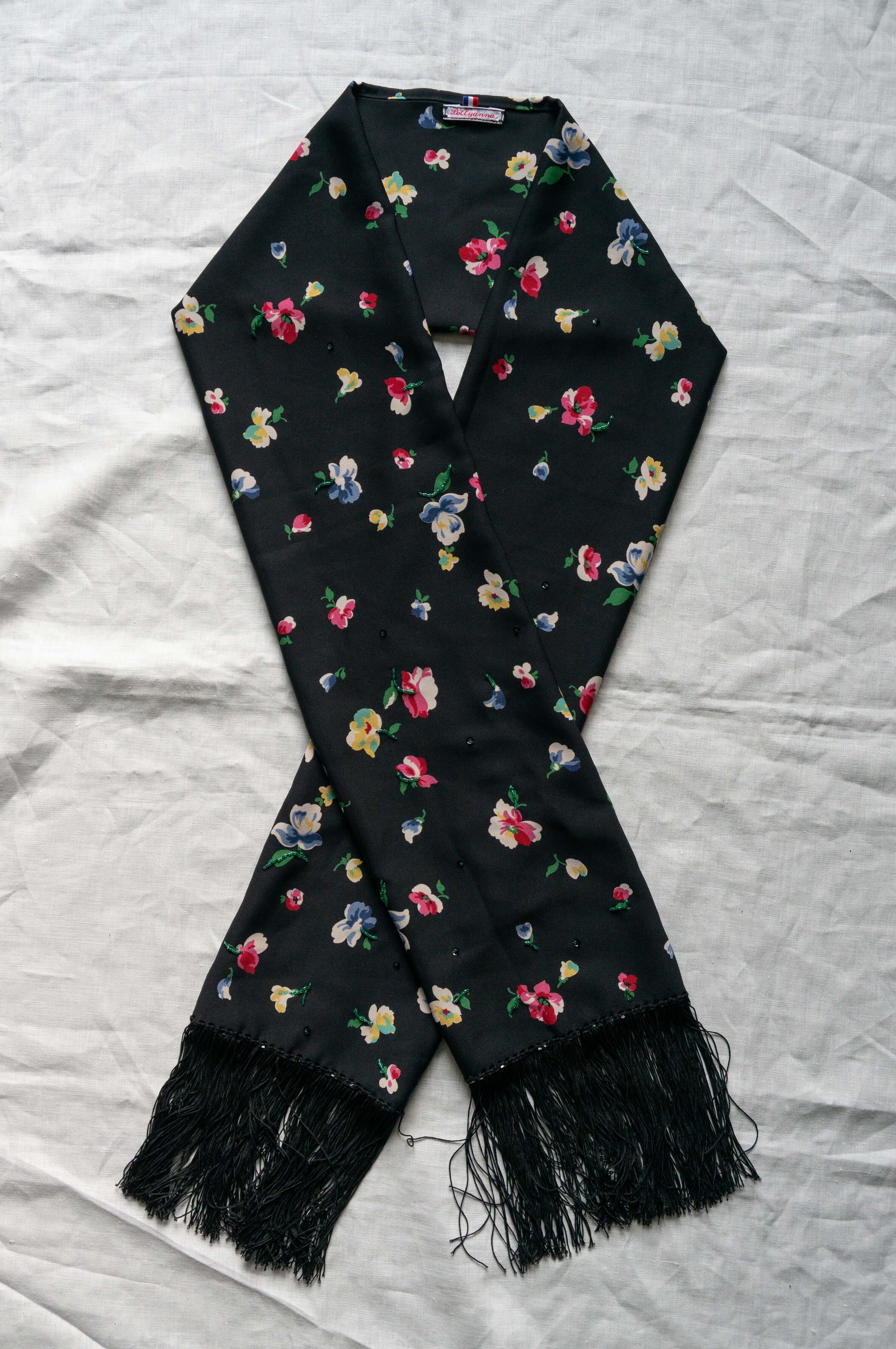 【France-Pollyanna】小花柄ストール〜ビーズ刺しゅう入