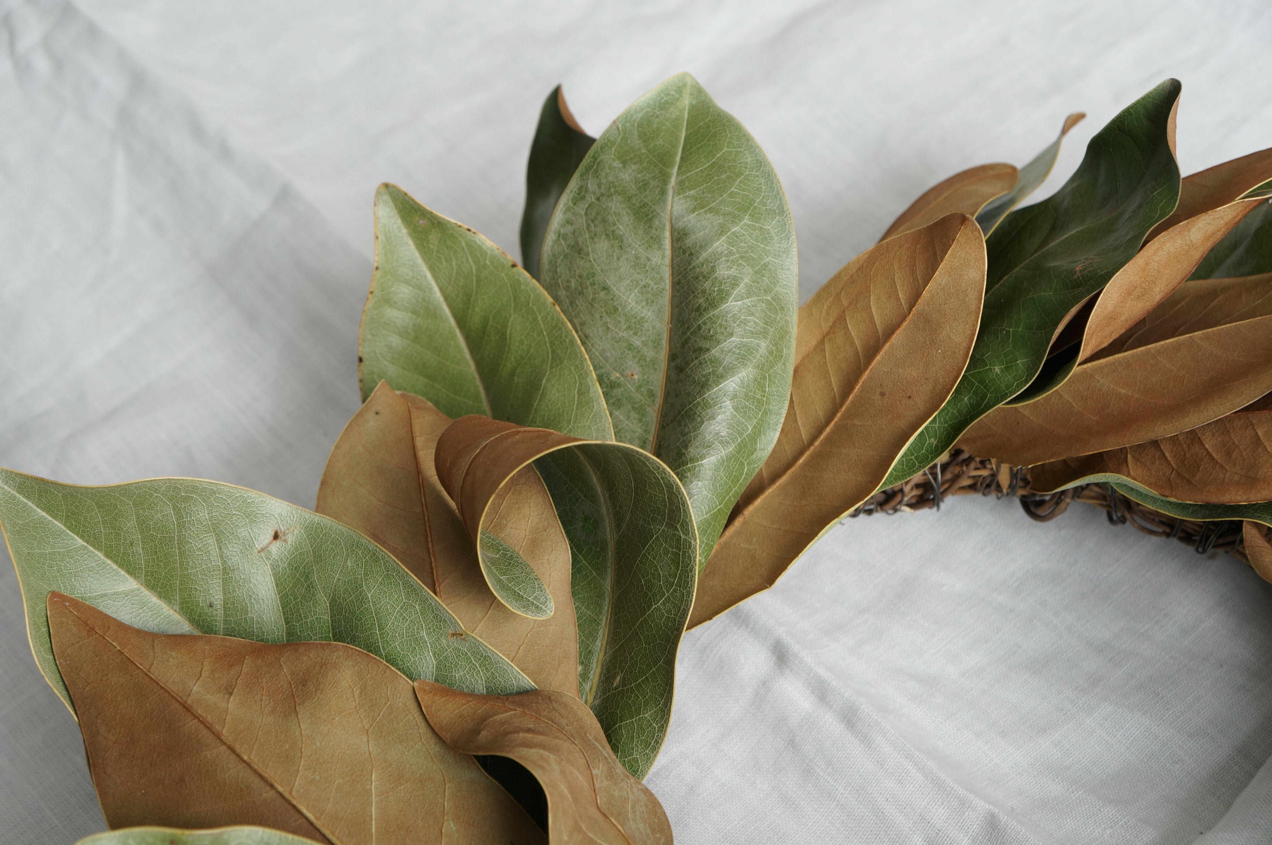 美しいマグノリアの葉を使ったリースです。
