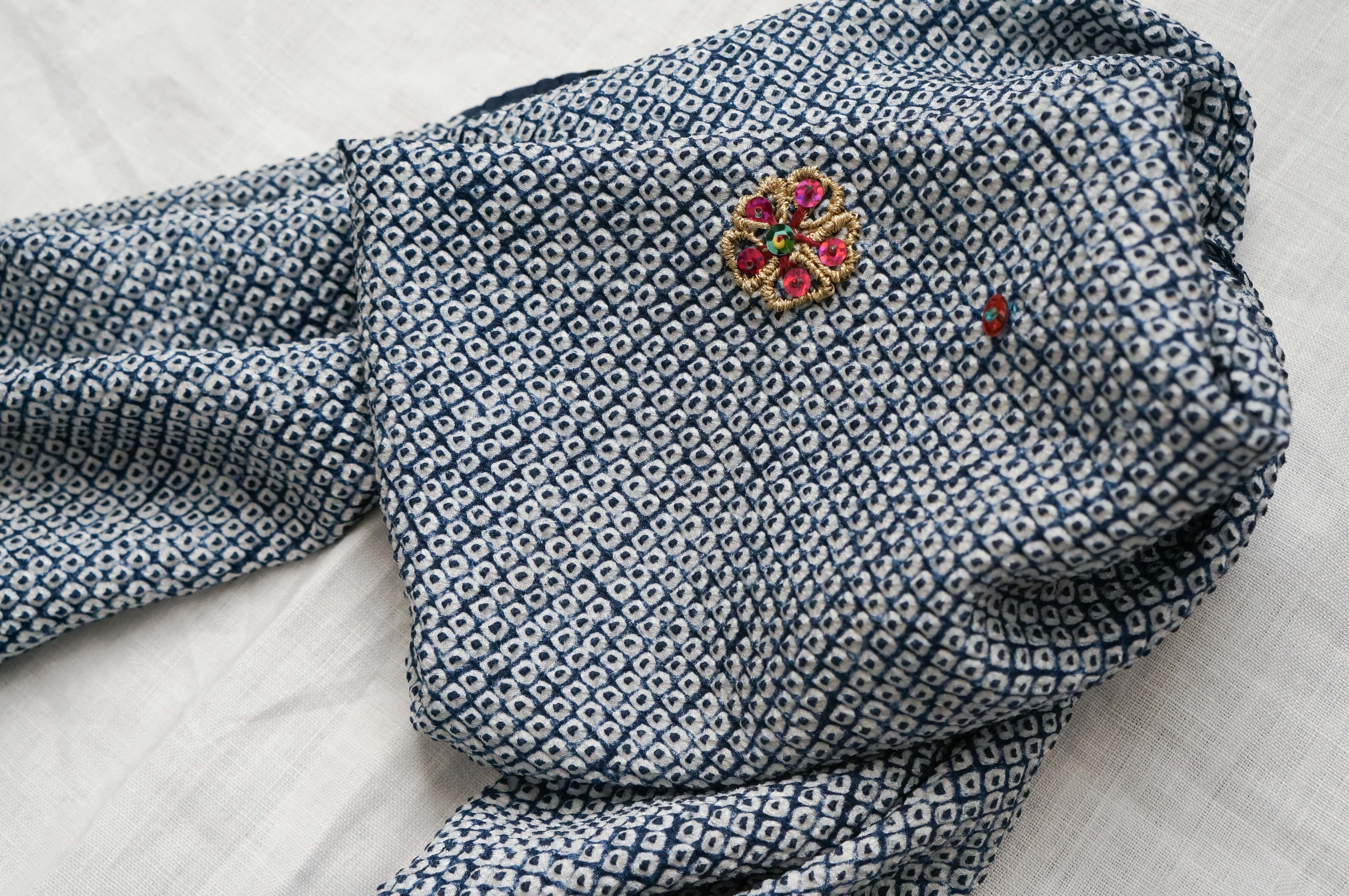 総絞りの生絹に、色とりどりのお花刺繍のバランスが素晴らしく素敵で、