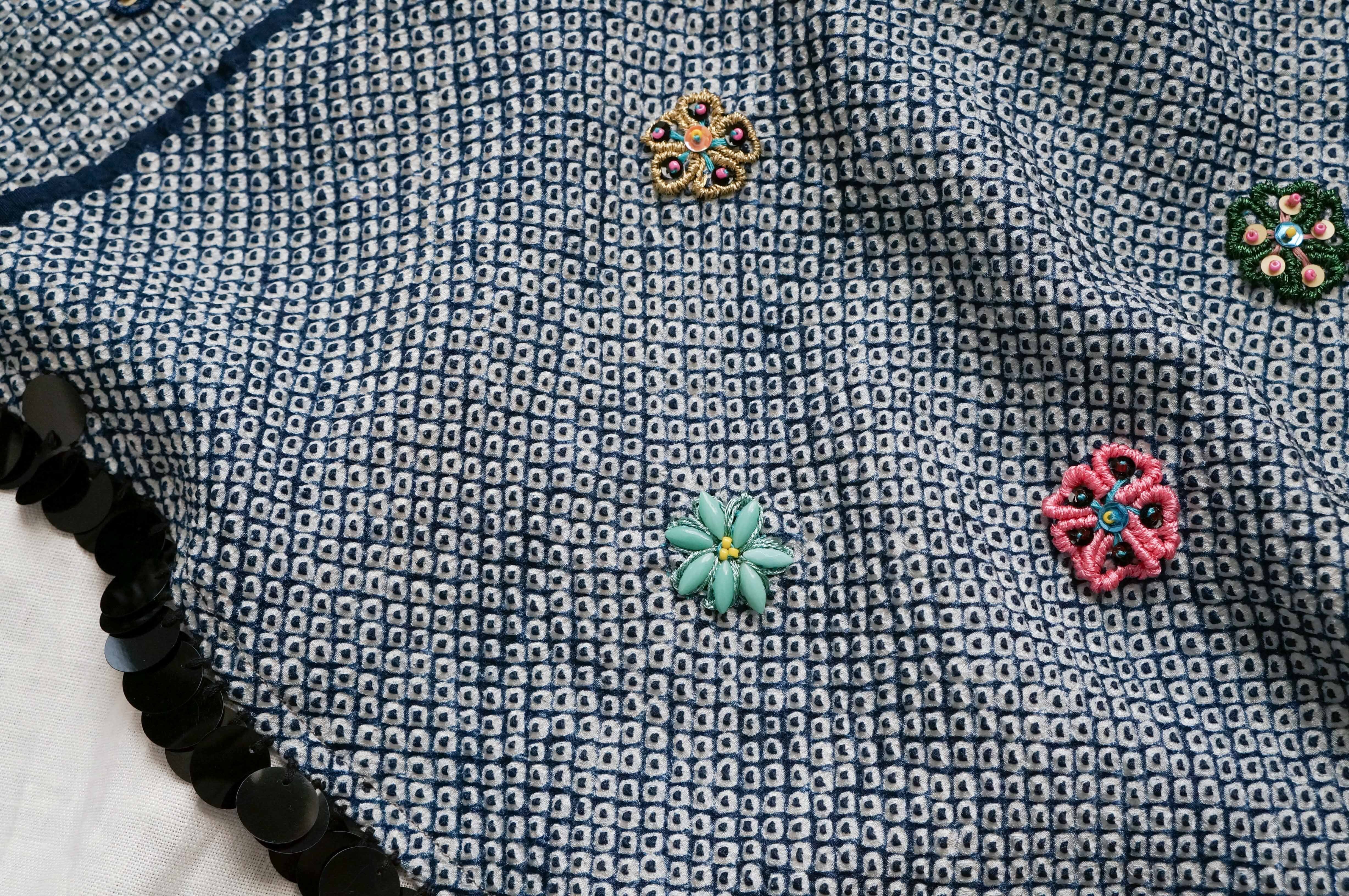 総絞りの生絹に、色とりどりのお花刺繍のバランスが素晴らしく素敵で、