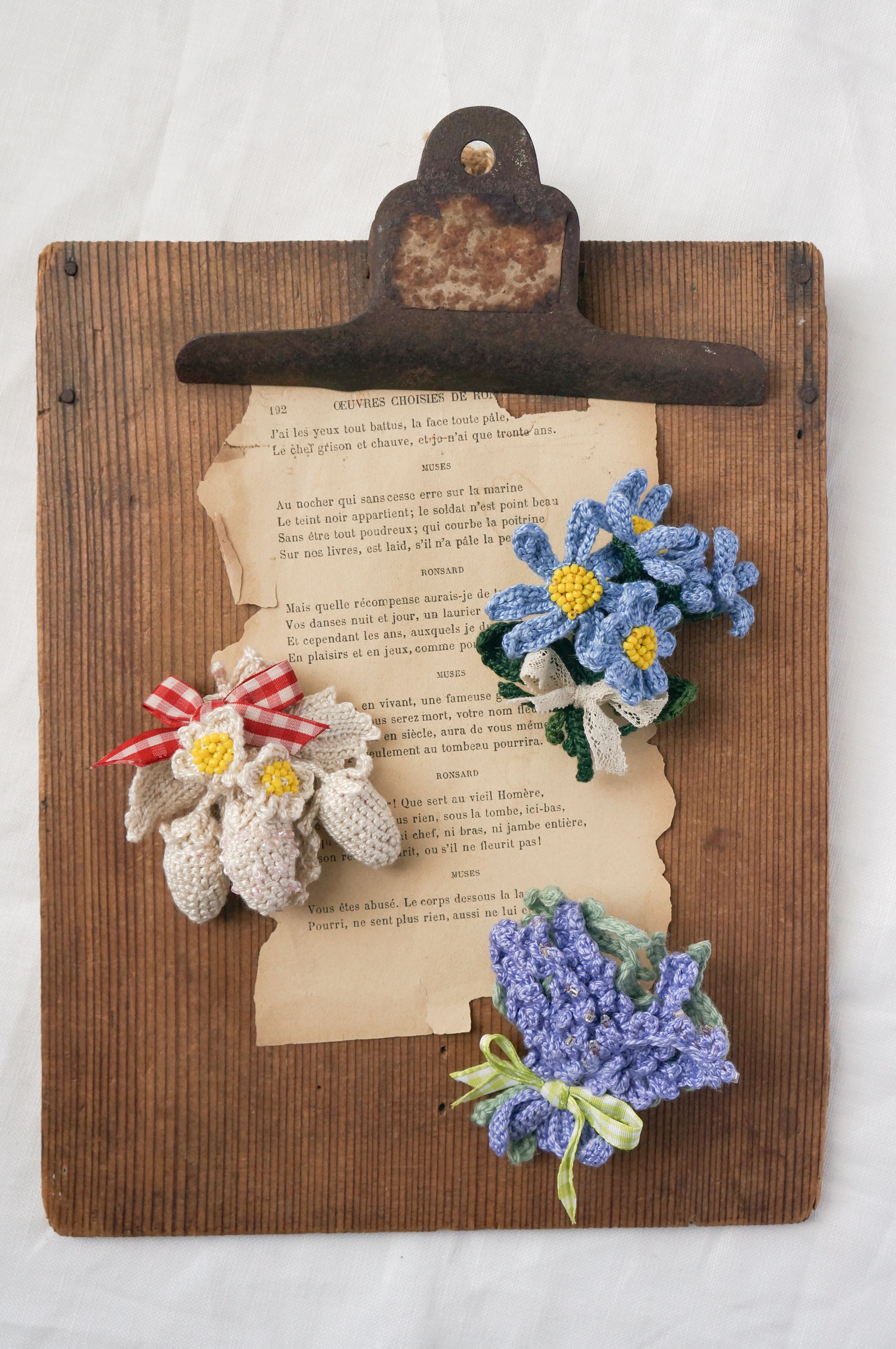 フランス在住のハンドメイドアーティスト、Pollyannaの手編みのブローチ。