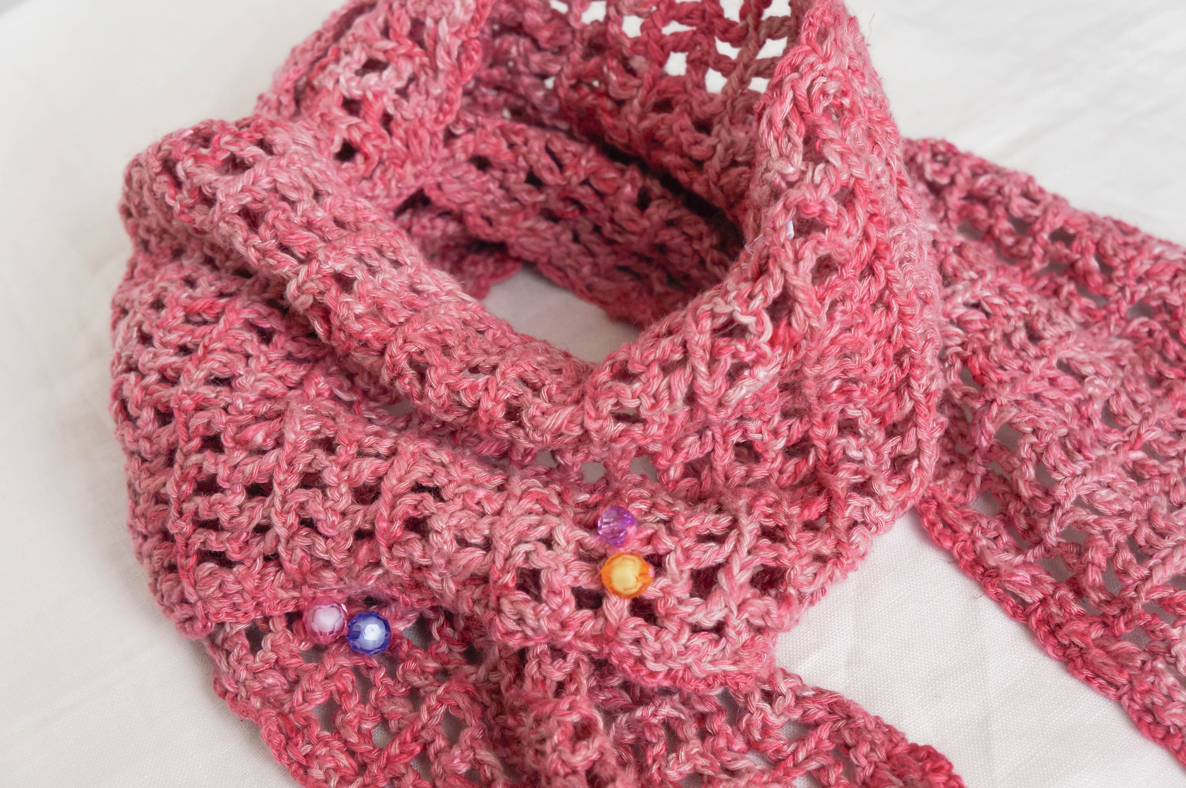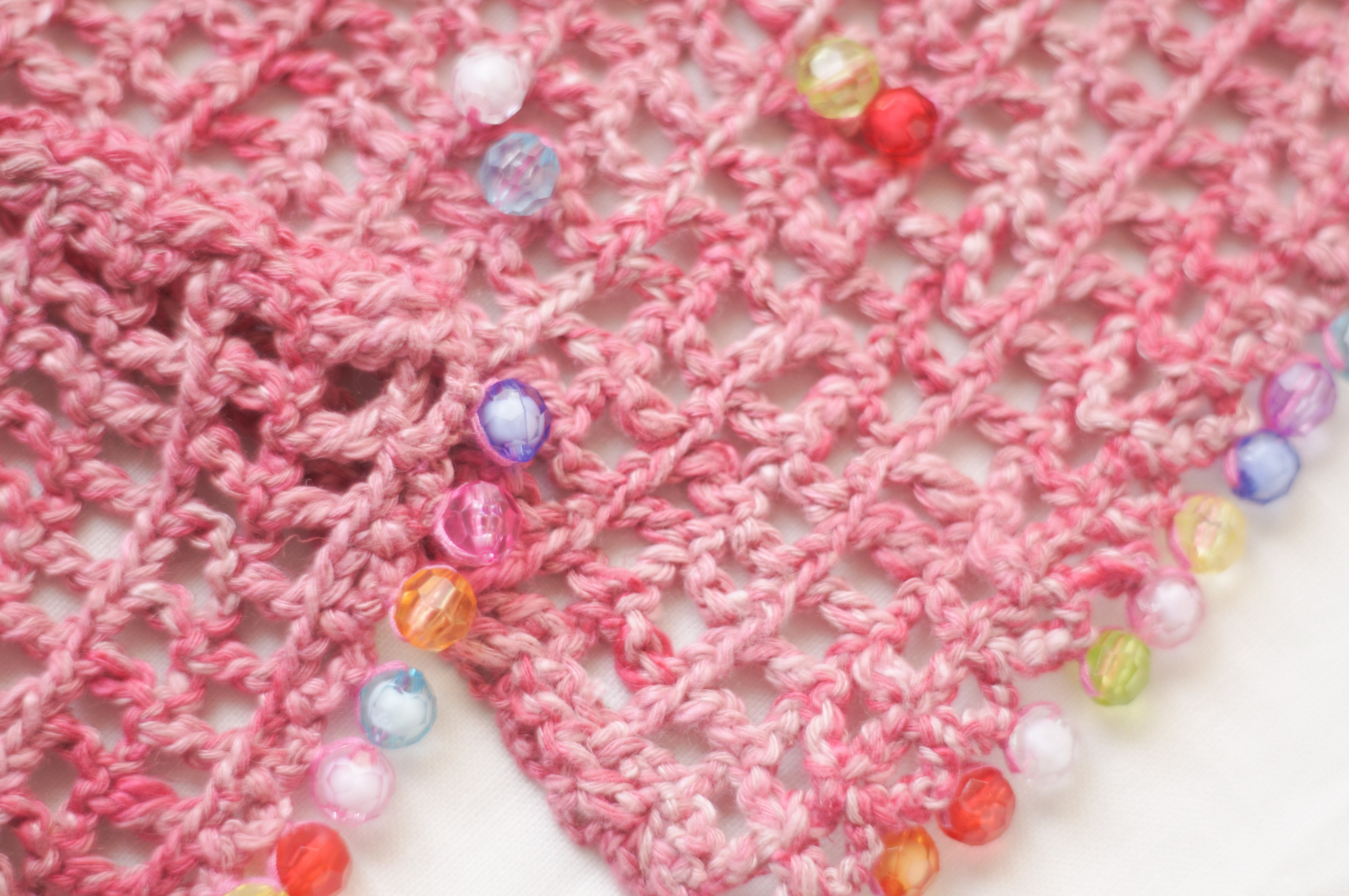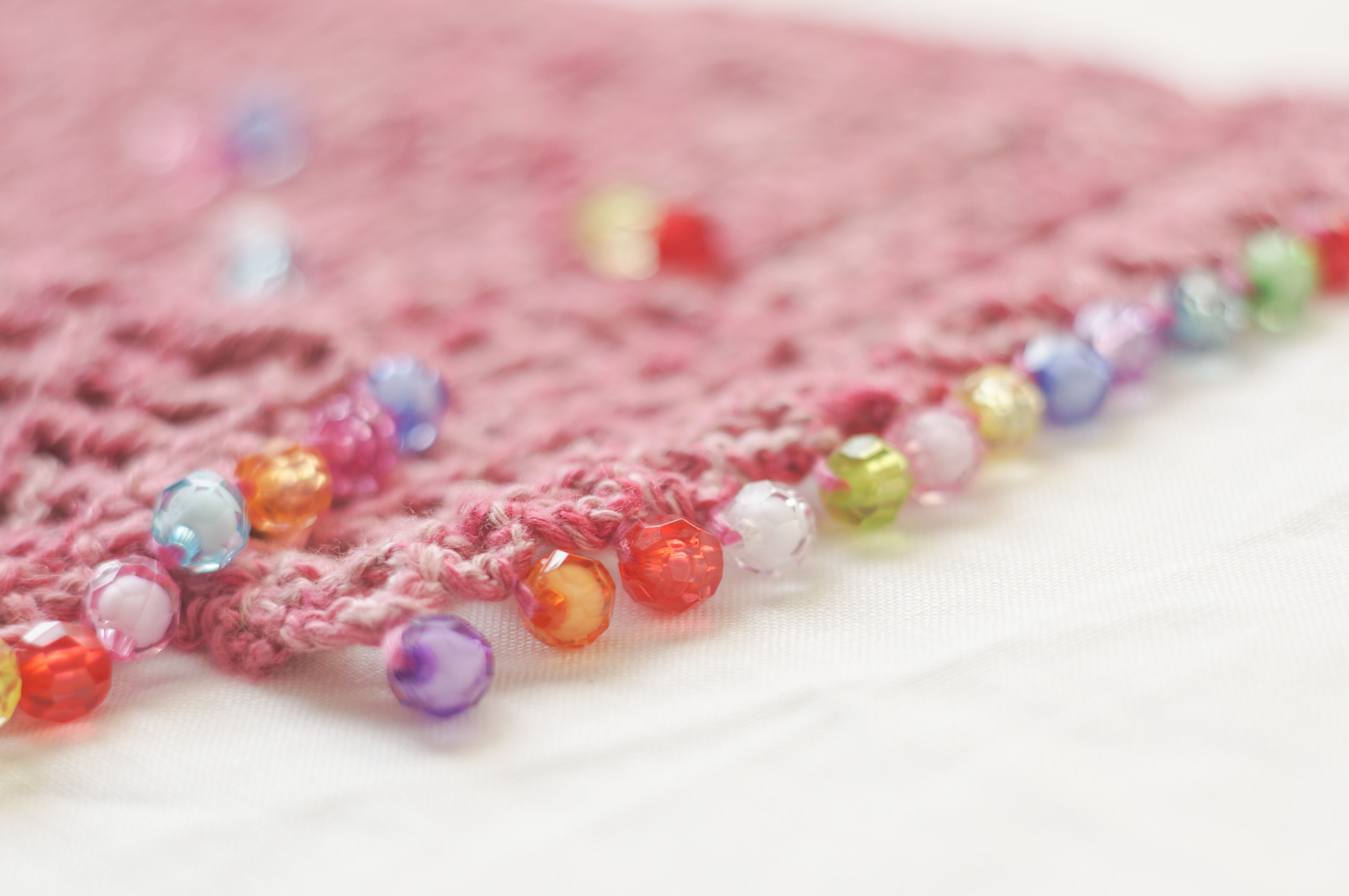 かぎ針編みにマルチカラーのビーズがキラキラ楽しくて、