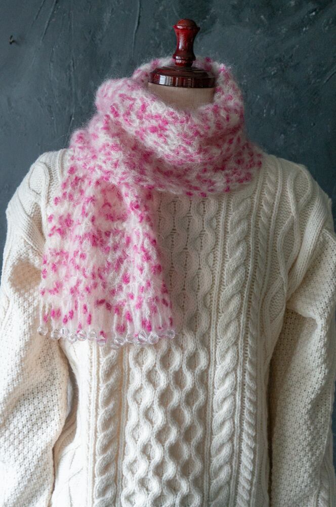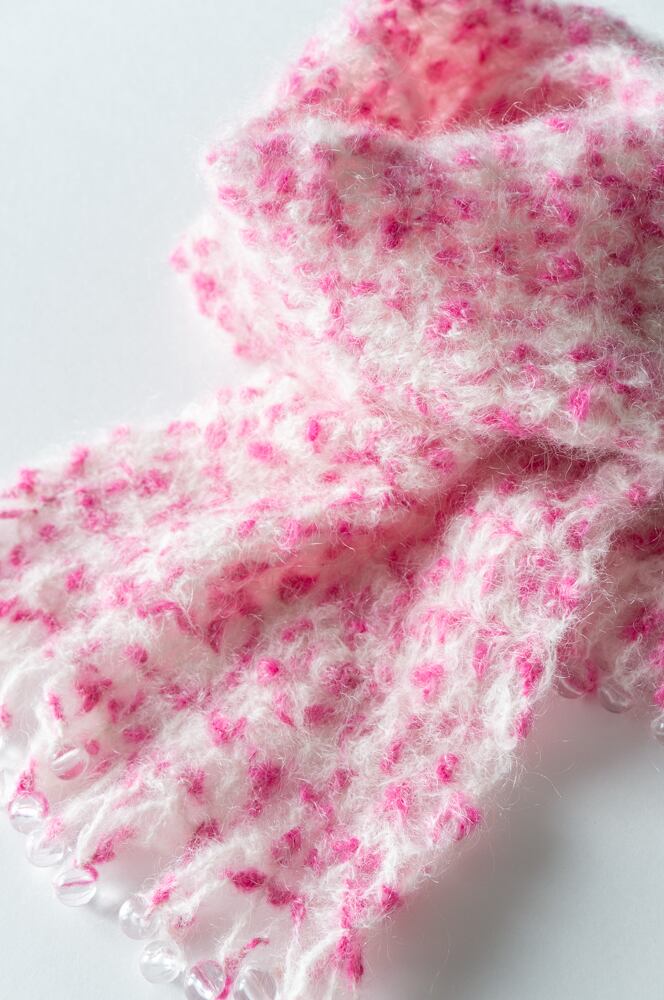 いちごミルク色 ふわふわ×キラキラ手編みマフラー