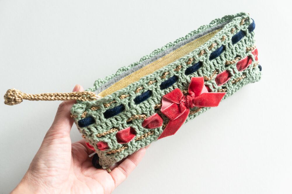 この内側のグレーは、表からもチラリと見え、グリーンとグレーの組み合わせも素敵です。