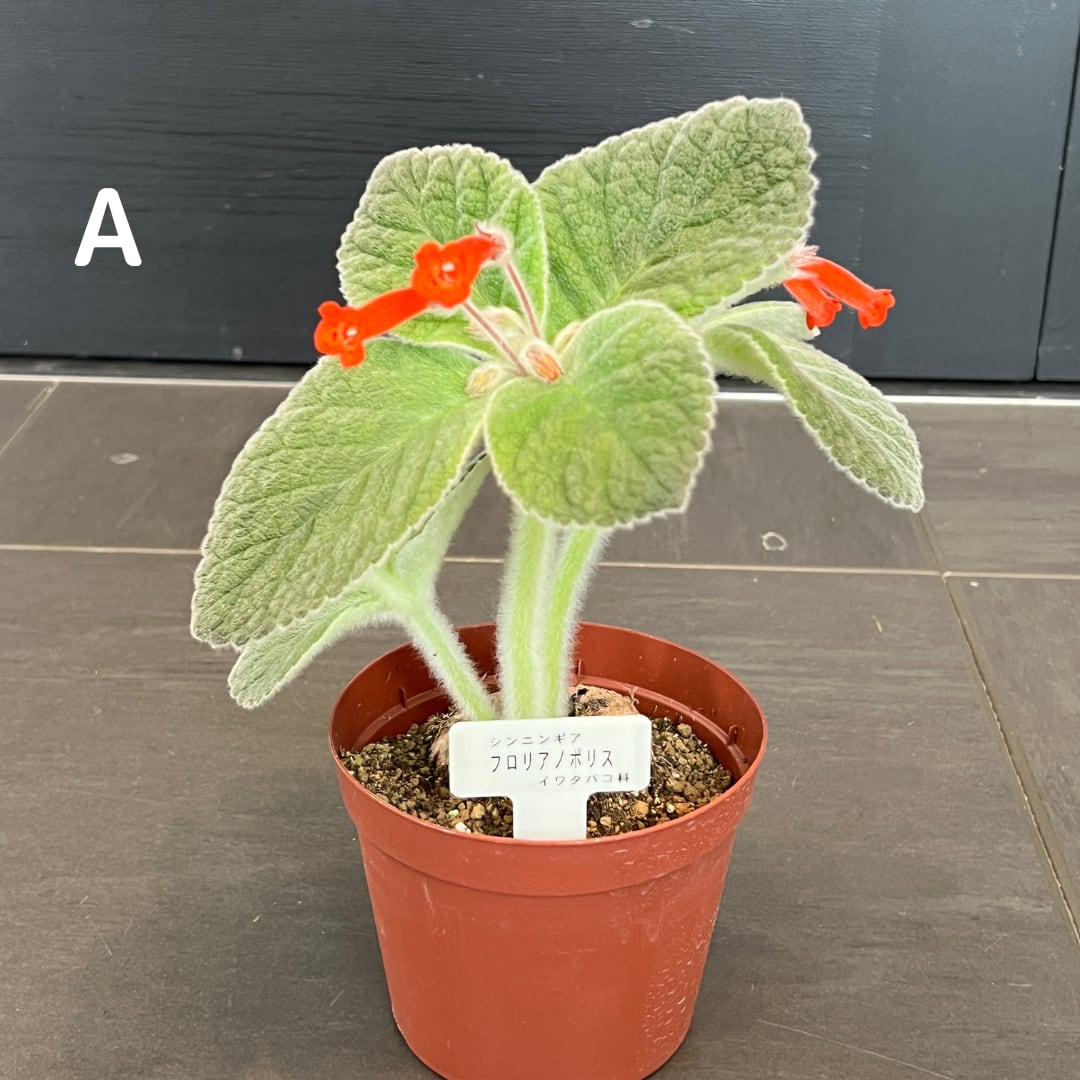 ふわふわの毛と塊根、赤に近いオレンジ色の花のコントラストが魅力のシンニンギア。