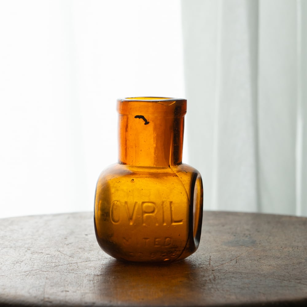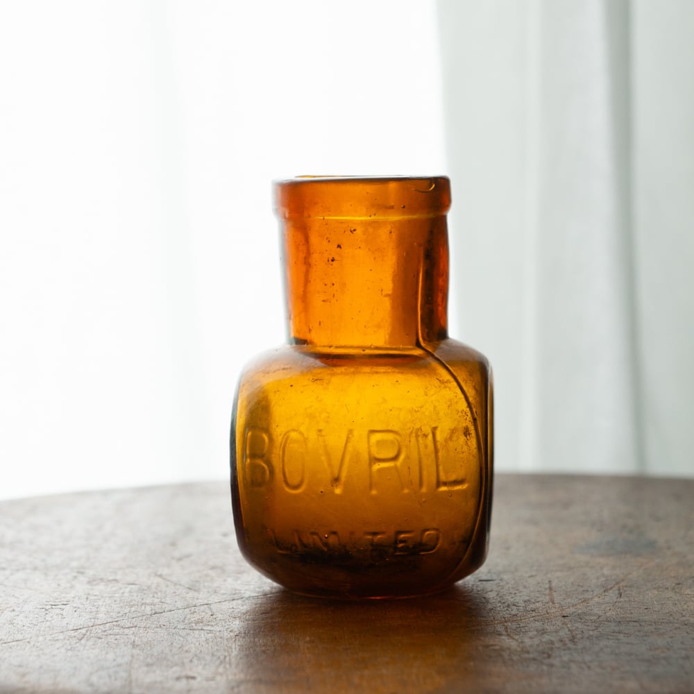 そのBOVRILの古いガラス瓶で、アンバーの色がとても魅力的。