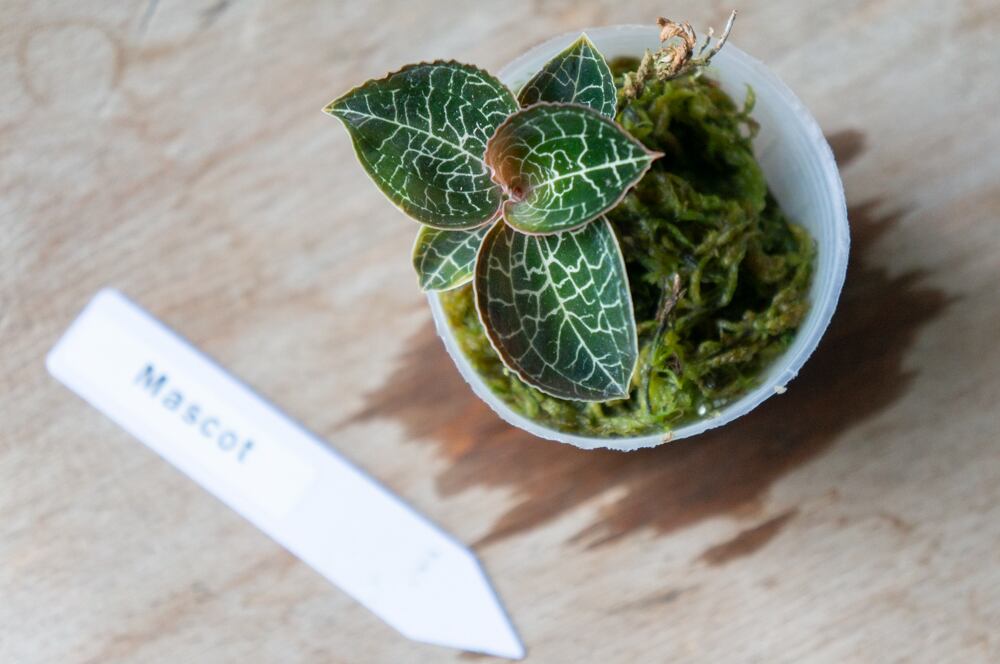 葉脈が美しい、ジュエルオーキッドの「マスコット」。