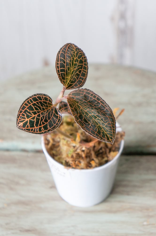 葉脈が美しい、ジュエルオーキッドの一種です。