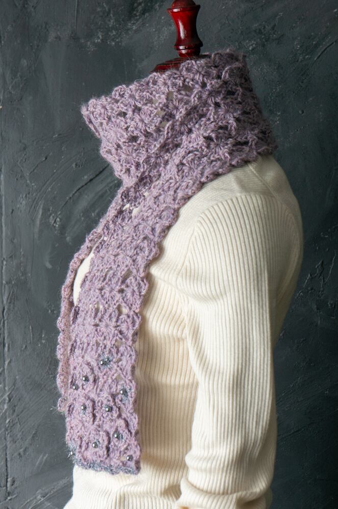 【France - Pollyanna】花編みマフラー パールビーズ使い